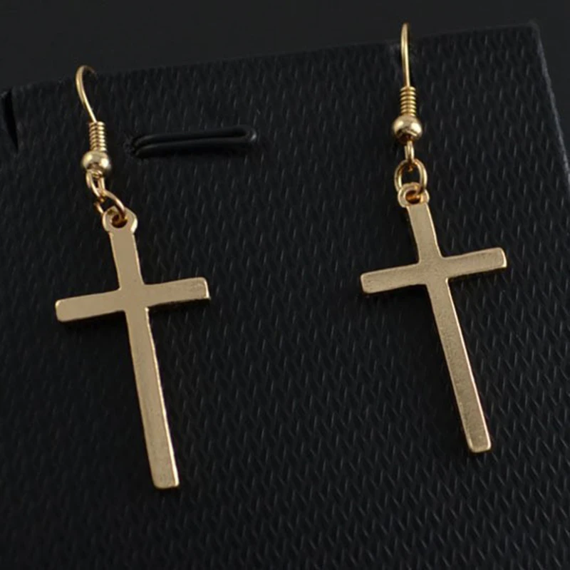 Серьги-подвески в стиле панк для мужчин и женщин, простые висячие серьги-подвески с крестиком для ушей, Ювелирное Украшение для женщин, цвет золотосеребро, 1 пара