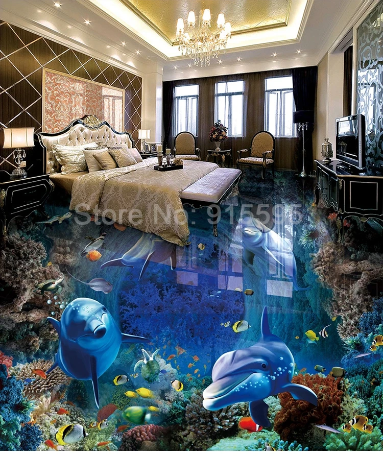 Пользовательские 3D наклейка для пола Дельфин красивый подводный мир ванная комната гостиная пол Декоративные Настенные обои водонепроницаемые