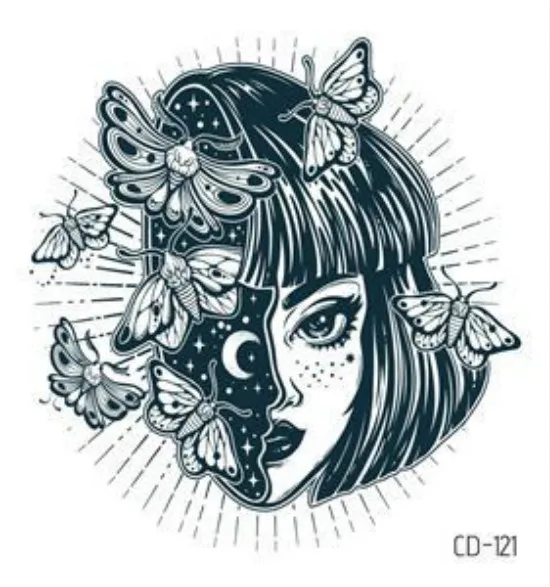 Водостойкая Временная тату-наклейка в виде бабочки, цветок, роза, и...