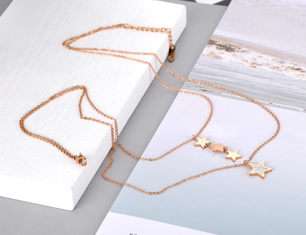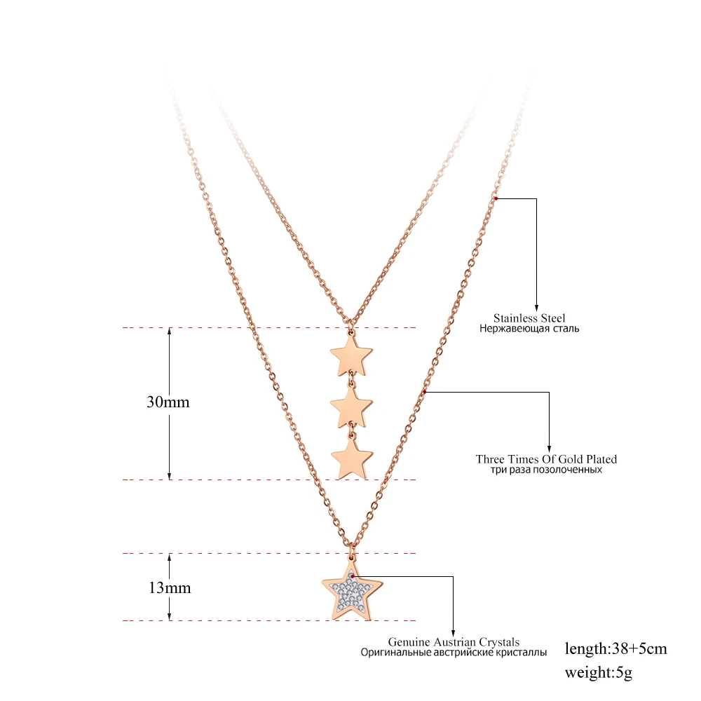 Lokaer богемное Двухслойное CZ Хрустальное Очаровательная подвеска в форме звезды ожерелья для женщин из нержавеющей стали летнее колье N20163