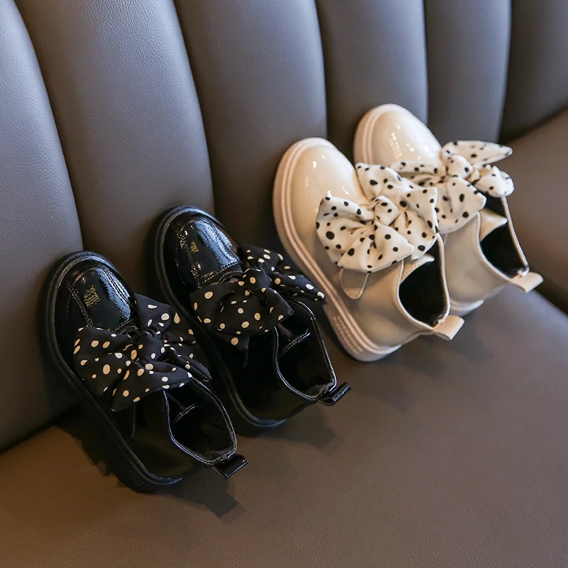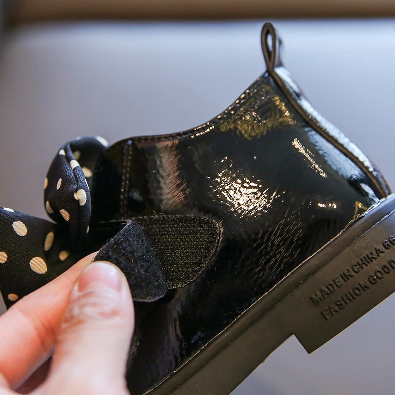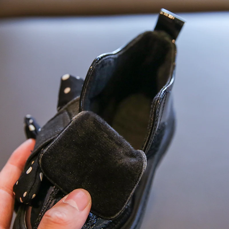 Детские ботинки с бантом, гладкие и мягкие теплые и удобные повседневные модные зимние уличные ботинки на липучке для девочек, новинка 2020