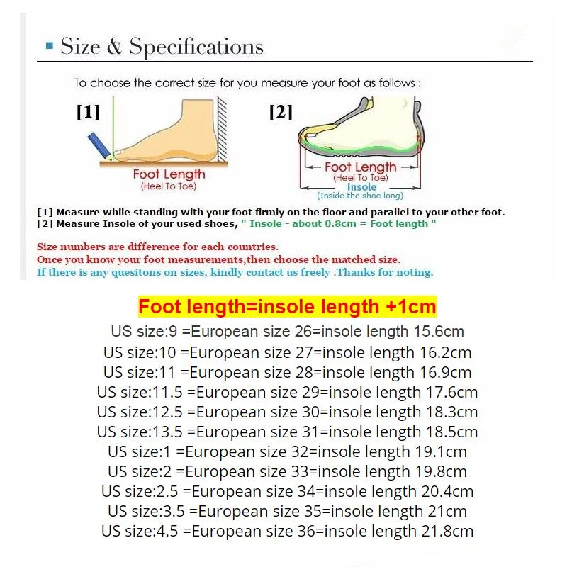 8. Очень важно: размер детской обуви не является стандартным, не используйте номер размера на выбор, единственный способ заставить вашего ребенка носить обувь-это измерить длину стопы вашего ребенка. Длина стопы является единственным стандартом!
