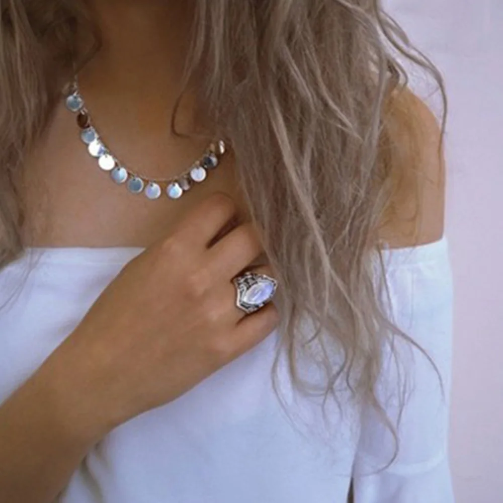 Винтажное антикварное большое кольцо с лунным камнем, богемное металлическое женское Модное Элегантное кольцо на палец, ювелирные изделия