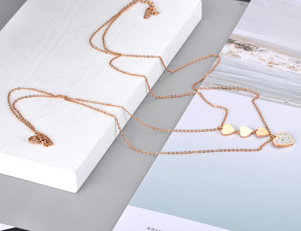 Женское Двухслойное ожерелье-чокер Lokaer, ожерелье из нержавеющей стали с подвеской в форме сердца с фианитами и кристаллами, N20153