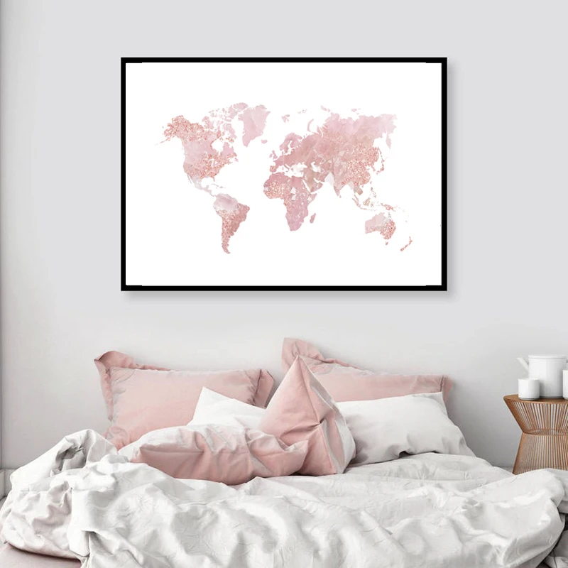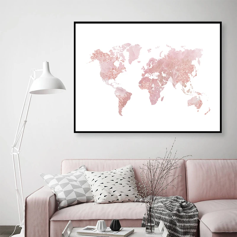 Румяна розовая карта мира Печать на холсте плакат минималистская Настенная картина на холсте картина в скандинавском стиле гостиная настенное украшение