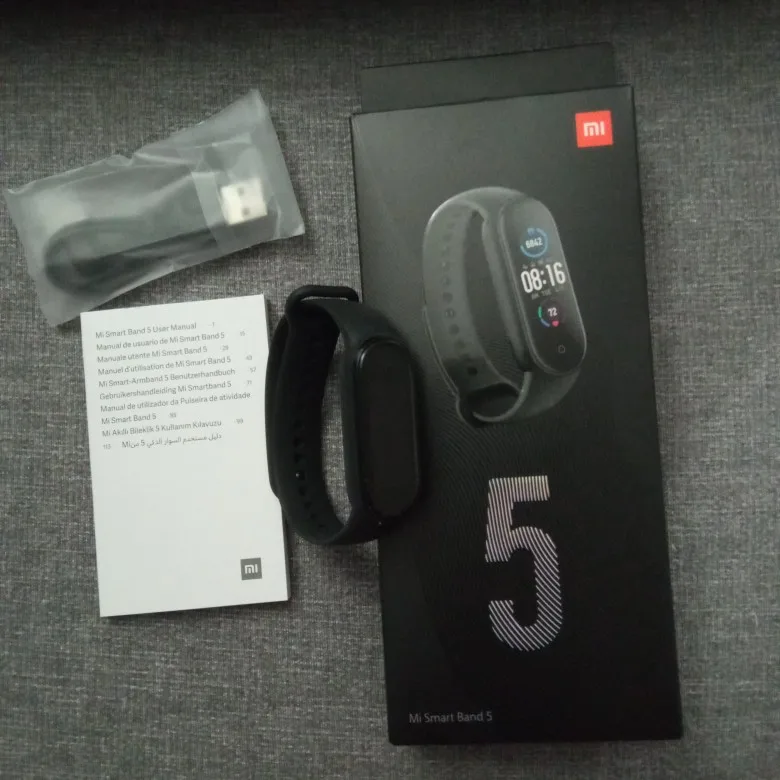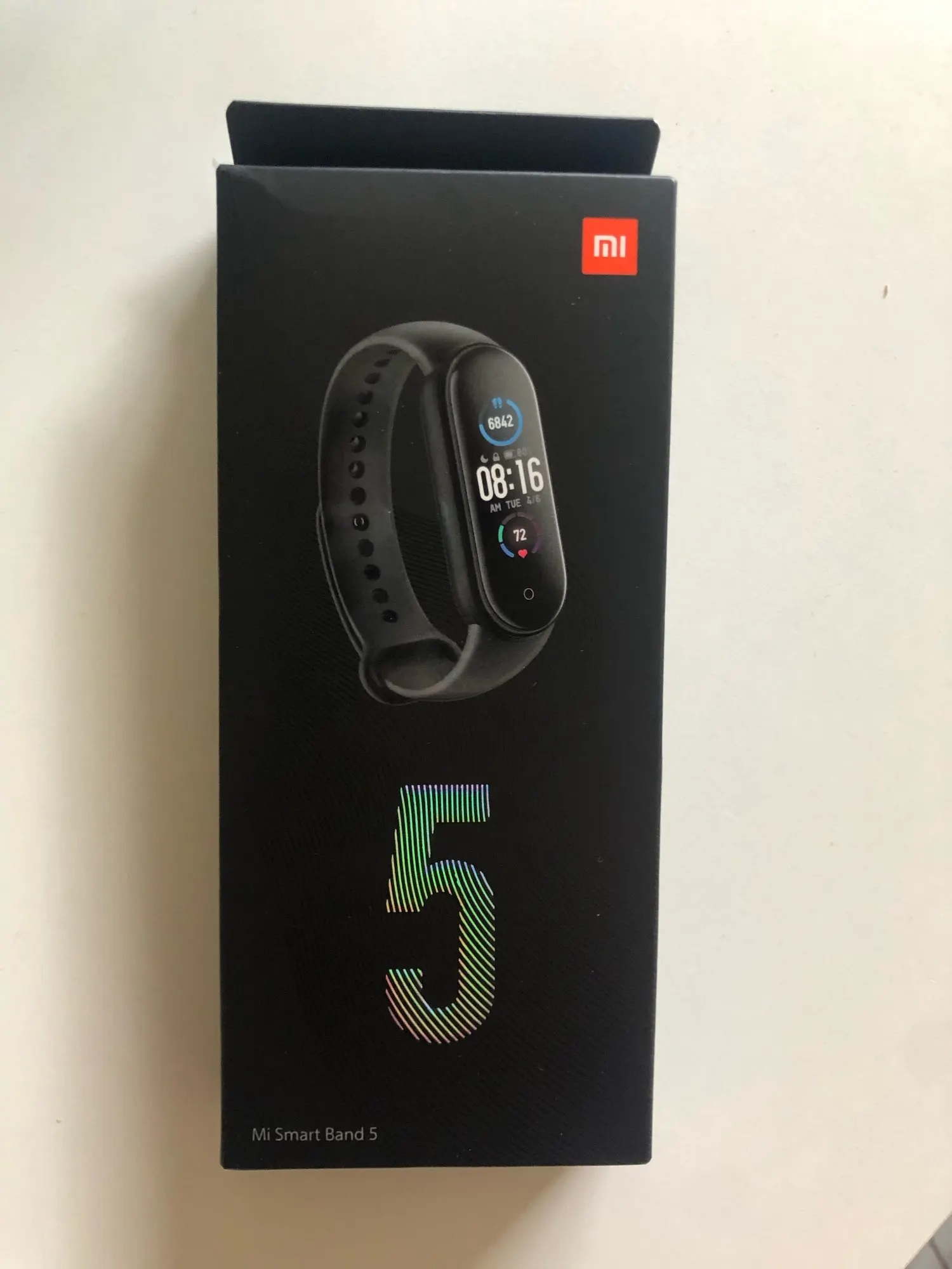 MiBand 5 не нуждается в представлении, все четко и работает, версия глобал, до этого была третья, так вот по сравнению с ней набивается грязь под кромку экрана сбоку, дисплей яркий и четкий. Доставка 2 недели, трек отслеживался.
