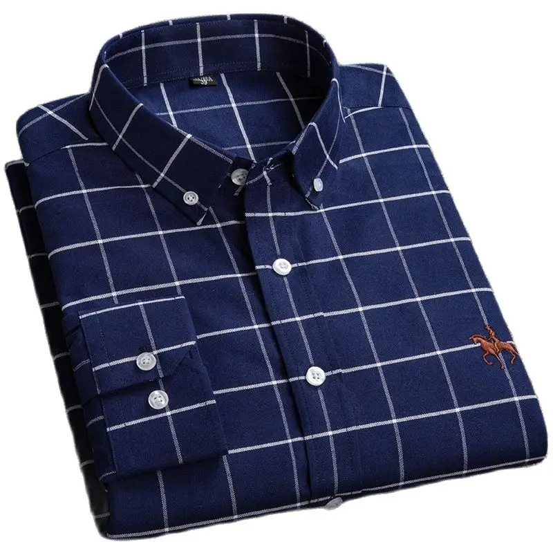 Хлопковая мужская клетчатая рубашка, Повседневная оксфордская рубашка с длинным рукавом для мужчин без карманов, Повседневная Осенняя мужская рубашка большого размера 6xl
