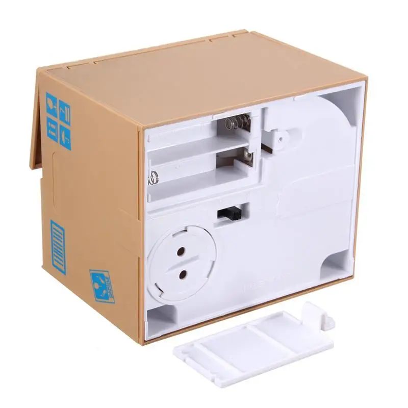 Тип: банка для монетМатериал: АБС-пластикАккумулятор: 2 * AA батареи (не входят в комплект)Размер: 12*10*9 см/4,7*3,9*3,5 дюймовЧистая Вес: 0,315 кг/11,1 oz