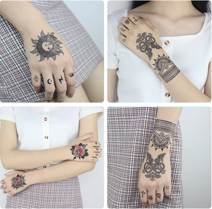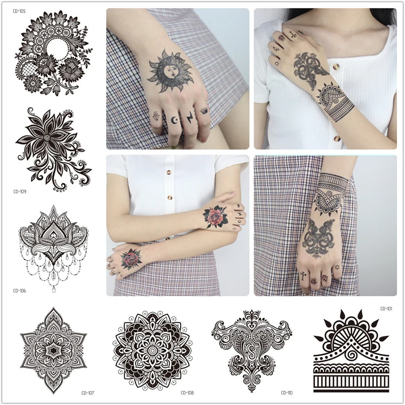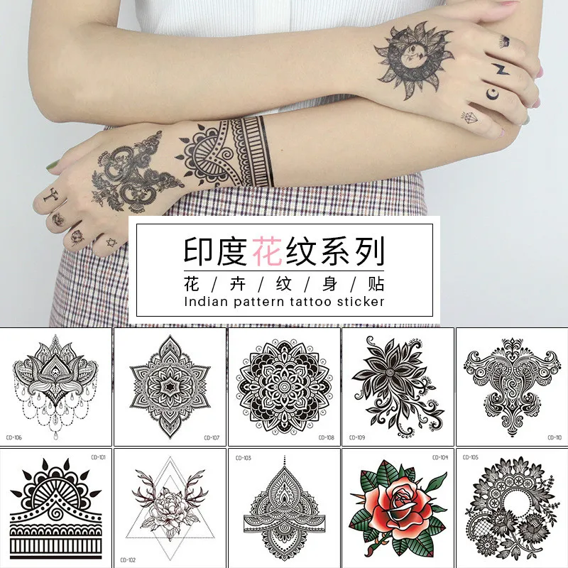 Индийский цветочный узор Татуировка наклейка водостойкая временная татуировка Золотая татуировка для женщин Хна Цветок тату дизайн татуировки наклейка