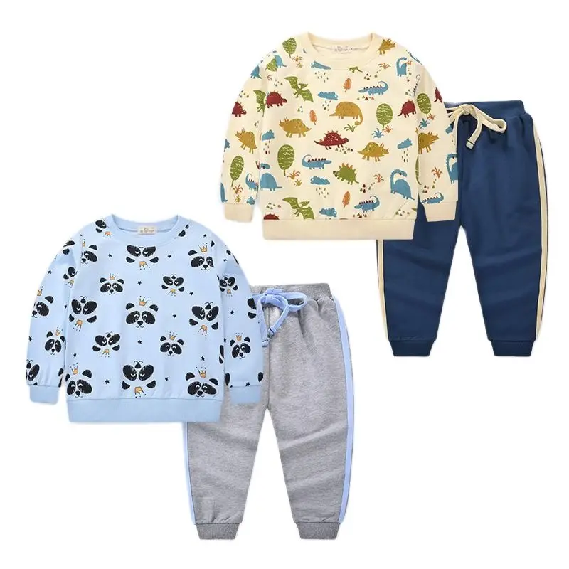 Комплект детской одежды из 2 предметов, свитшот с длинным рукавом и штаны, Повседневная Верхняя одежда с мультяшными животными для мальчиков и девочек, 2022