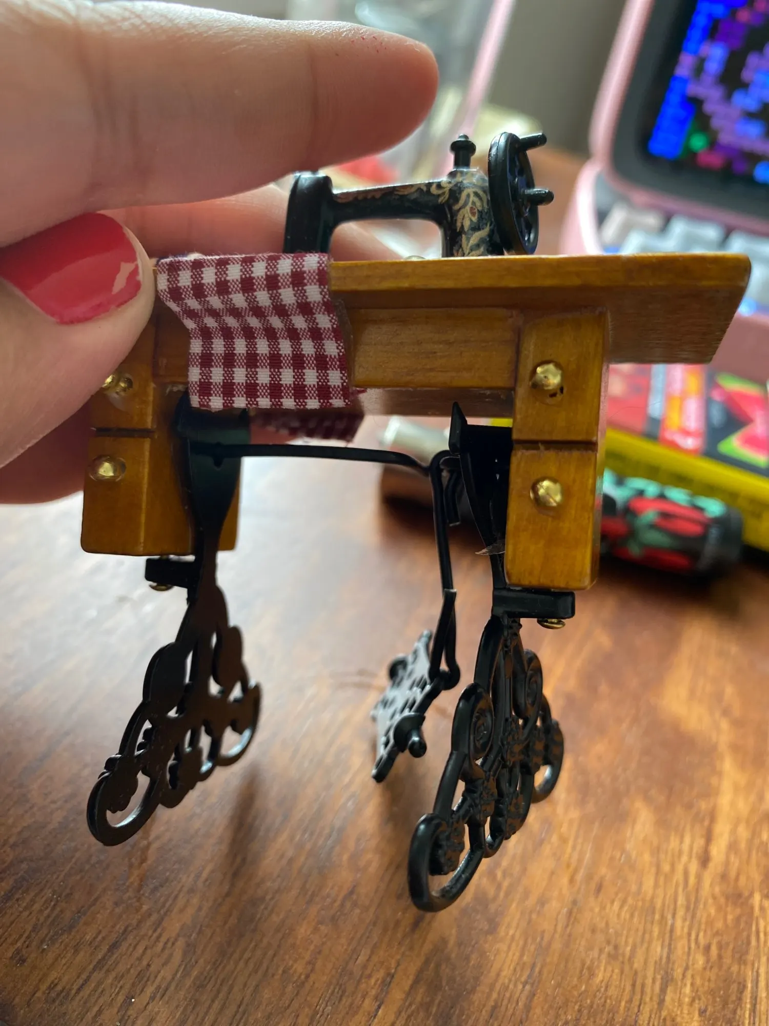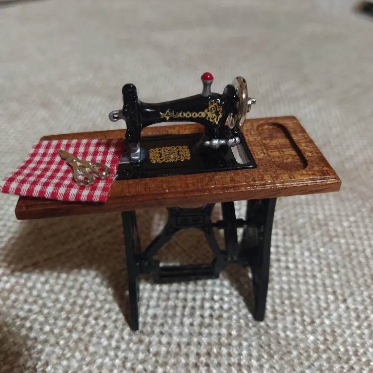 Миниатюрная мебель для кукольного домика, деревянная швейная машина с нитками, ножницы, аксессуары для кукольного домика, игрушки, 1 шт.