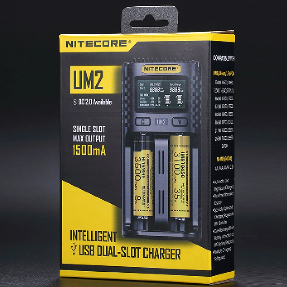 Зарядное устройство Nitecore UM2 Это интеллектуальное зарядное устройство с двумя слотами USB, которое изменит способ зарядки аккумуляторов. UM2 имеет вход QC, который обеспечивает максимальную выходную мощность 3000mA, так что вы можете реалистично зарядить один аккумулятор 3500 mAh до 80 процентов за 2 часа в одном слоте. Вы сможете быстро зарядить батареи и положить их обратно, чтобы использовать так же быстро с Nitecore UM2. Это зарядное устройство имеет возможность заряжать две батареи одновременно, управляя двумя слотами самостоятельно, это означает, что вы сможете увидеть, сколько зарядит ваши батареи, не беспокоясь о любом разрядке, что делает ваши батареи дольше. Nitecore UM2 автоматически обнаруживает уровень заряда вашего аккумулятора и обеспечивает соответствующее напряжение и время зарядки, чтобы обеспечить безопасность и долгий срок службы батареи. Зарядное устройство Nitecore UM2 оснащено ЖК-дисплеем, поэтому вы можете следить за зарядкой аккумуляторов в режиме реального времени и быстро просматривать информацию. Вы никогда не будете беспокоиться о перегреве, перезарядке или потере энергии, потому что вы будете знать, как только зарядное устройство. Кроме того, это зарядное устройство имеет уникальный дизайн охлаждающего ребра, который быстро рассеивает тепло, чтобы обеспечить производительность охлаждения, одновременно защищая вас и ваши батареи от возможных опасностей. Кроме того, с добавлением интеллектуального регулирования температуры это зарядное устройство не перегревается и обеспечивает стабильность процесса зарядки. Эти функции делают зарядное устройство Nitecore UM2 необходимым для того, чтобы ваши перезаряжаемые батареи были живыми.