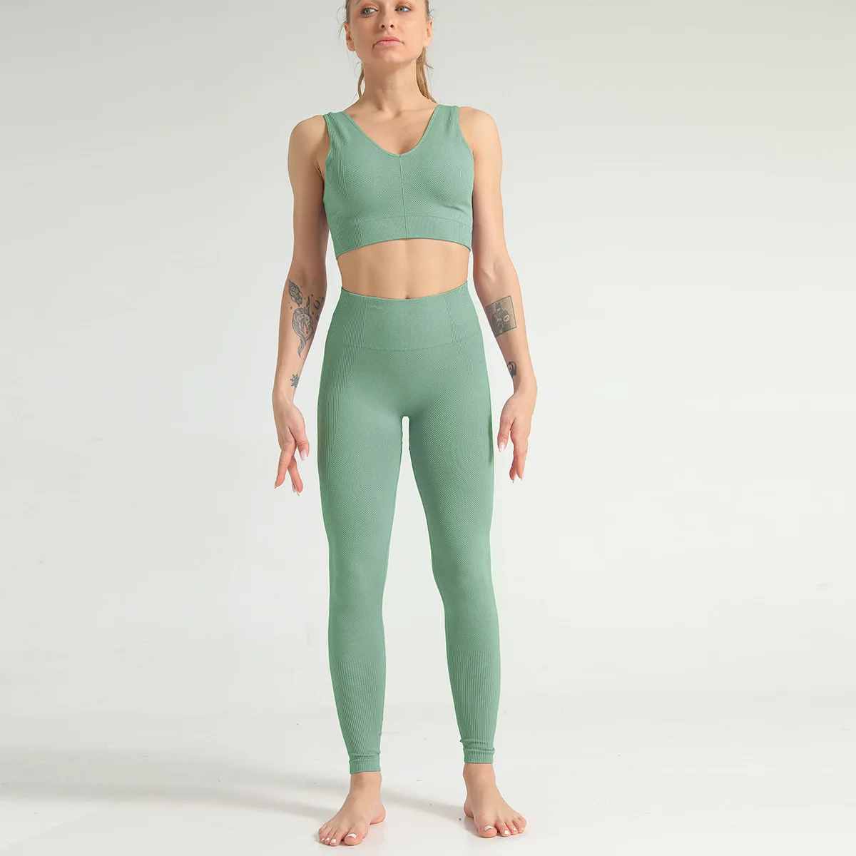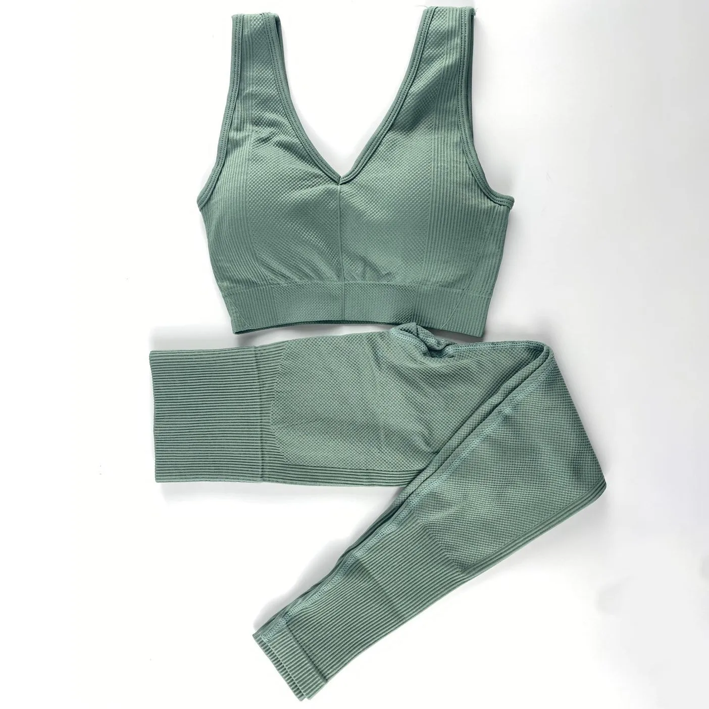 Женский бесшовный комплект для йоги, одежда для фитнеса, леггинсы с высокой талией и спортивный бюстгальтер, одежда для тренировок в тренажерном зале, женская одежда для бега