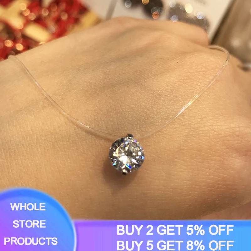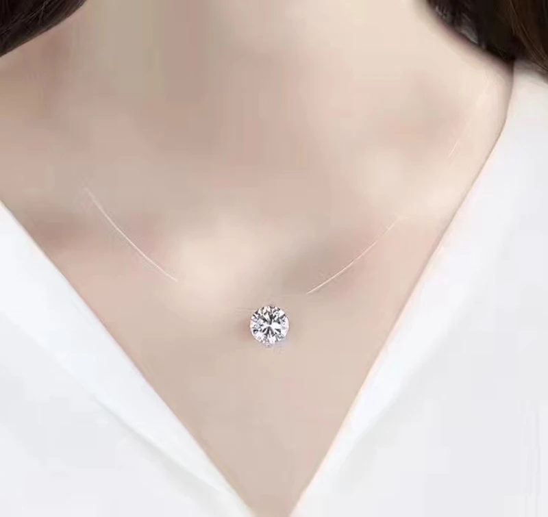 Женское колье на шею, цепочка на ключицы с невидимым кристаллом