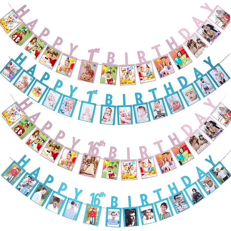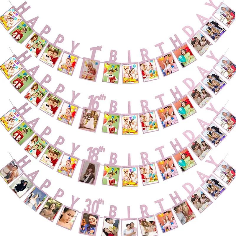 1 Набор с днем рождения фото баннер Сделай Сам Бумажная гирлянда баннер для 1-го 2-го 16182130405060 День Рождения флаг поставки