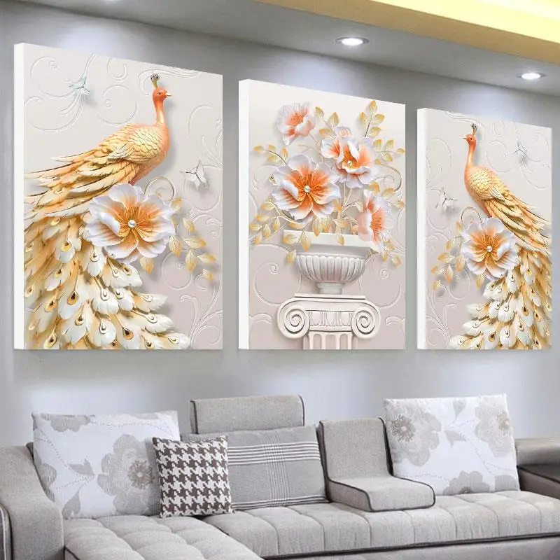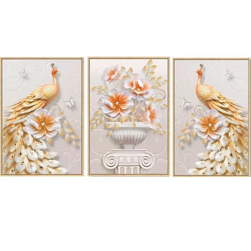 Алмазная картина особой формы для украшения стен, картина сделай сам с павлином и цветами, Триптих для алмазной вышивки