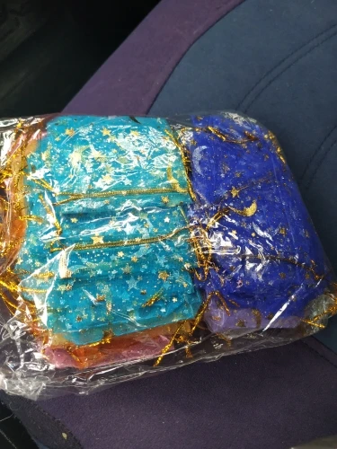 Очень довольна покупочкой. Сколько у других продавцев заказывала, редко приходило полное количество мешков. У этого продавца и количество 100шт, пересчитала, и качество отличное, все мешочки аккуратно сделаны, никаких лишних ниток и зацепок на ткани, и ткань новая не разлазиться и блёстки на руку не перелазят и не сыпяться. Отличные мешочки, советую.