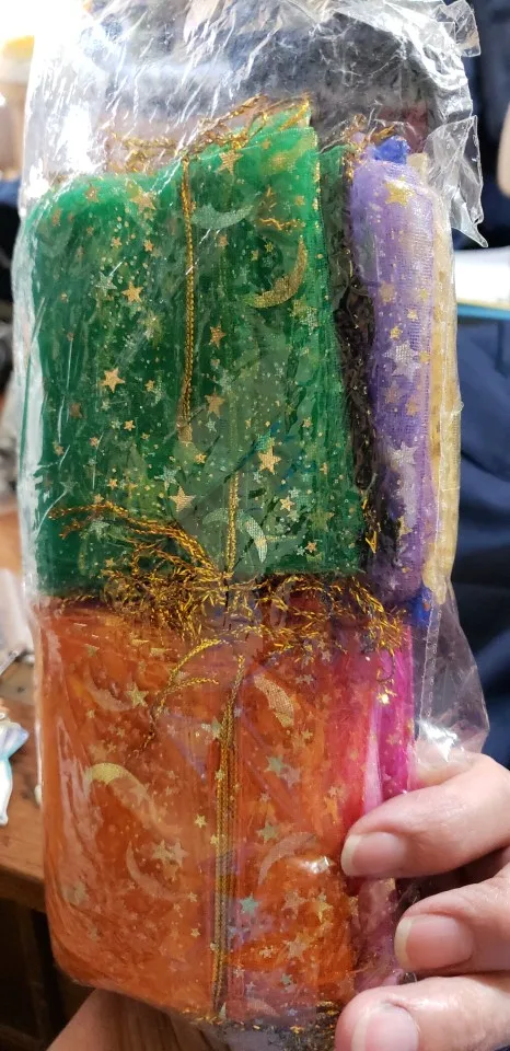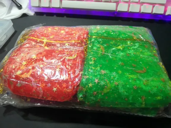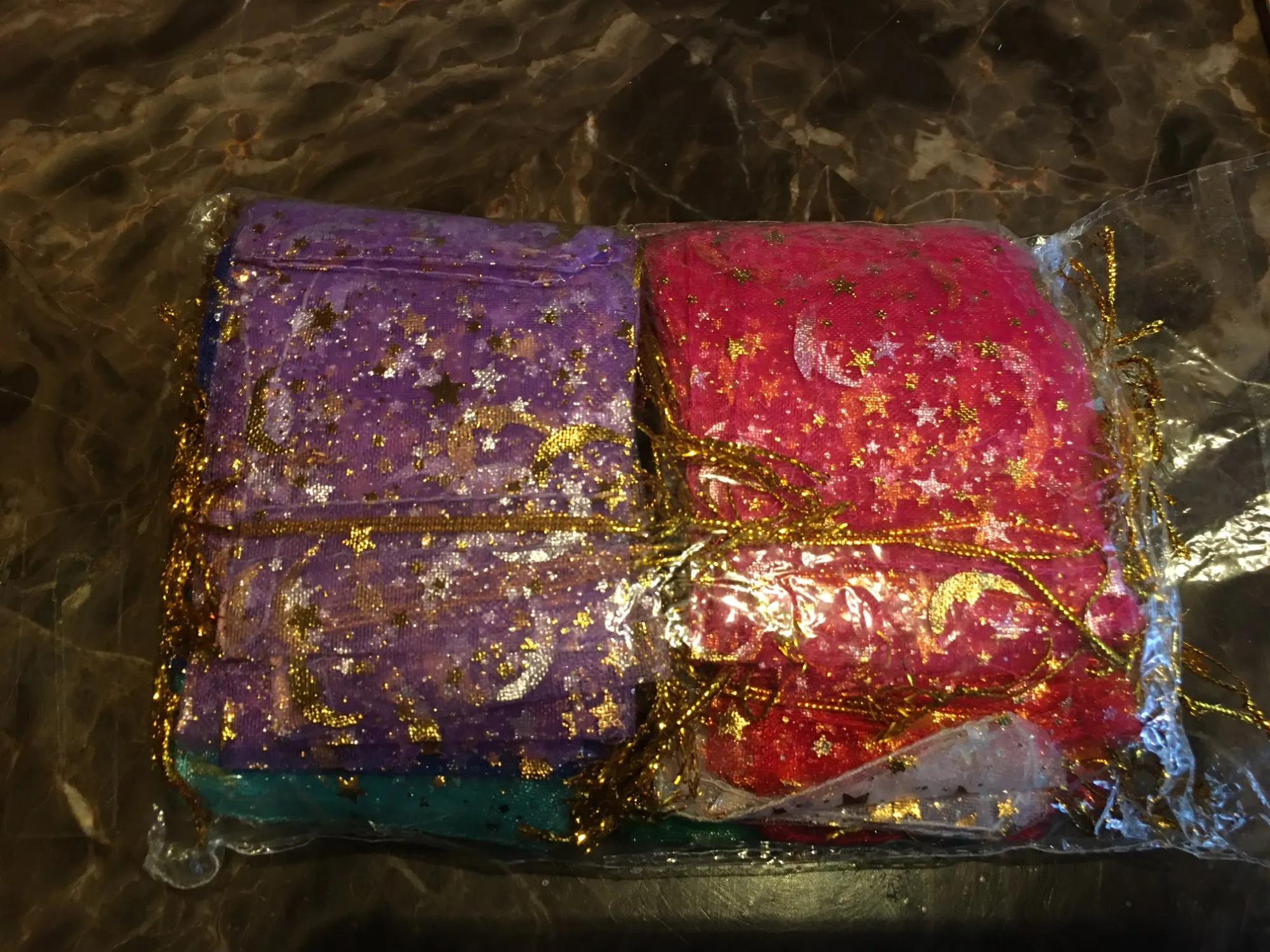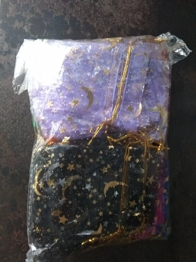 заказ приехал быстро - 16 сентября заказала, 6 октября уже был у меня. по 10 мешочков каждого цвета, симпатичные. выглядят не особо крепкими, но посмотрю потом, как в эксплуатации - взяла для упаковки сувениров коллегам к Рождеству