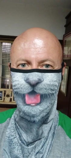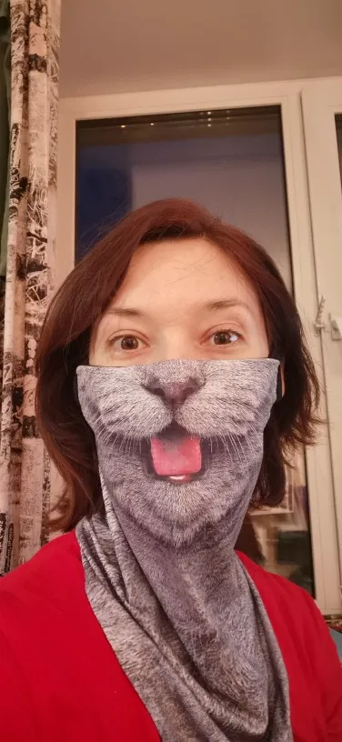 очень долго шел - больше месяца. принт - хороший, резинки для ушей - неудобные.