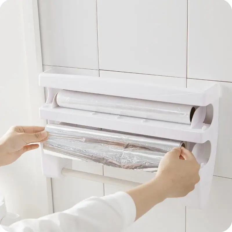 Многофункциональные кухонные стеллажи с резаками, полки для хранения из оловянной фольги с пластиковой оберткой, вешалки для полотенец