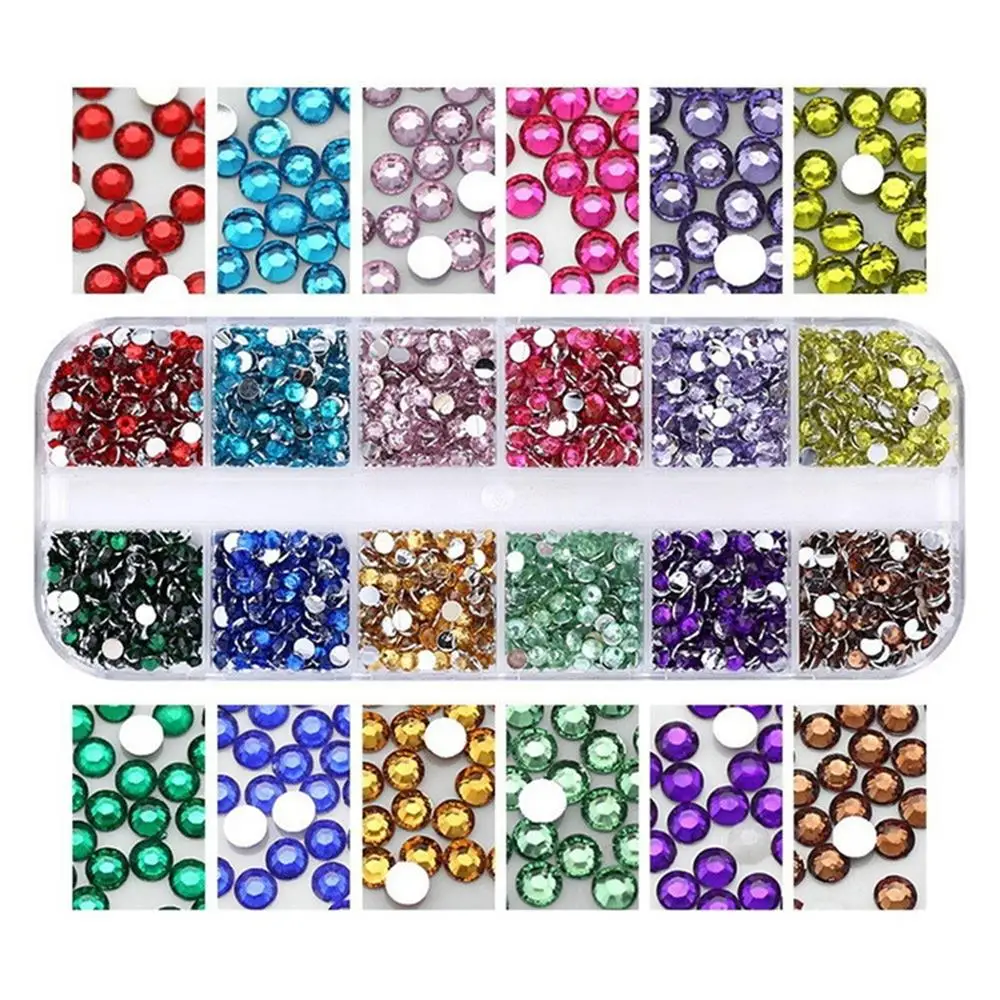 12 сетки/набор красочных украшение для ногтей ювелирное изделие на ногти стразы кристаллы дизайн ногтей искусство стразы акриловый Фрезер для ногтей cо шлифовальными камни с плоской задней частью блестящие Совет № 2/3 мм 3D блестящие украшения для ногтей инструмент