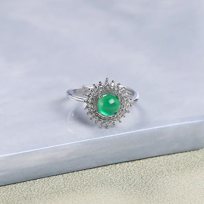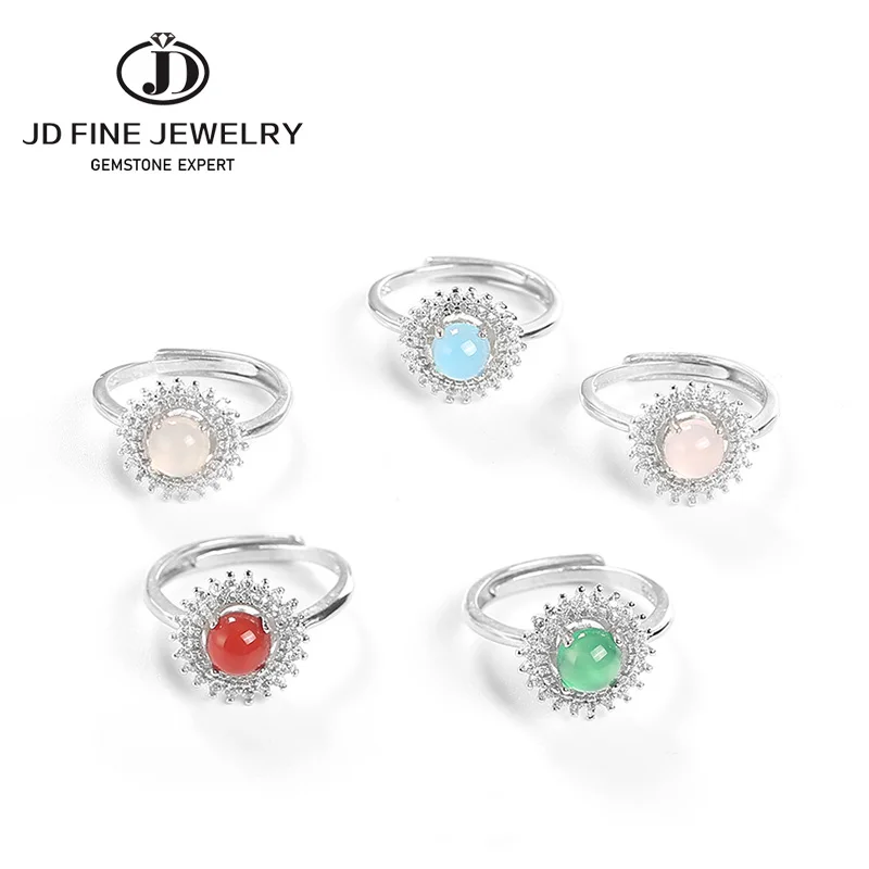 Женское кольцо с круглой огранкой JD, кольцо синего, красного, зеленого цвета с агатом, свадебные подарки, ювелирные изделия с цветком регулируемого размера