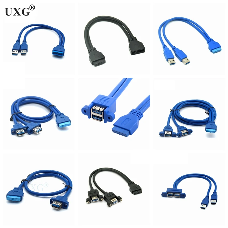 USB 3,0 материнская плата 20P двойной двухпортовый USB 3,0 штекер-гнездо винтовое крепление панель тип к материнской плате 20Pin удлинитель 0,5 м