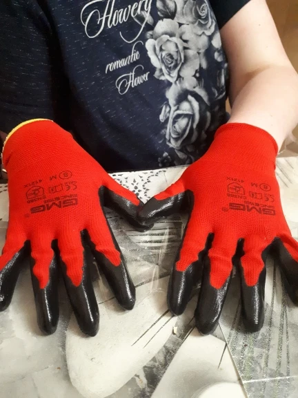 Доставка быстрая. Перчатки маломерят. Сама ткань тонковата. Покрытие качественное,слой толстый. Прекрасно держит масло,бензин. За два дня лопнули между большим и указательным. Но это из-за размера. Рекомендую для ремонта авто. На фото серые перчатки,брал на хоз рынке по 50руб. тоже размер S и они после 3-4 стирок.