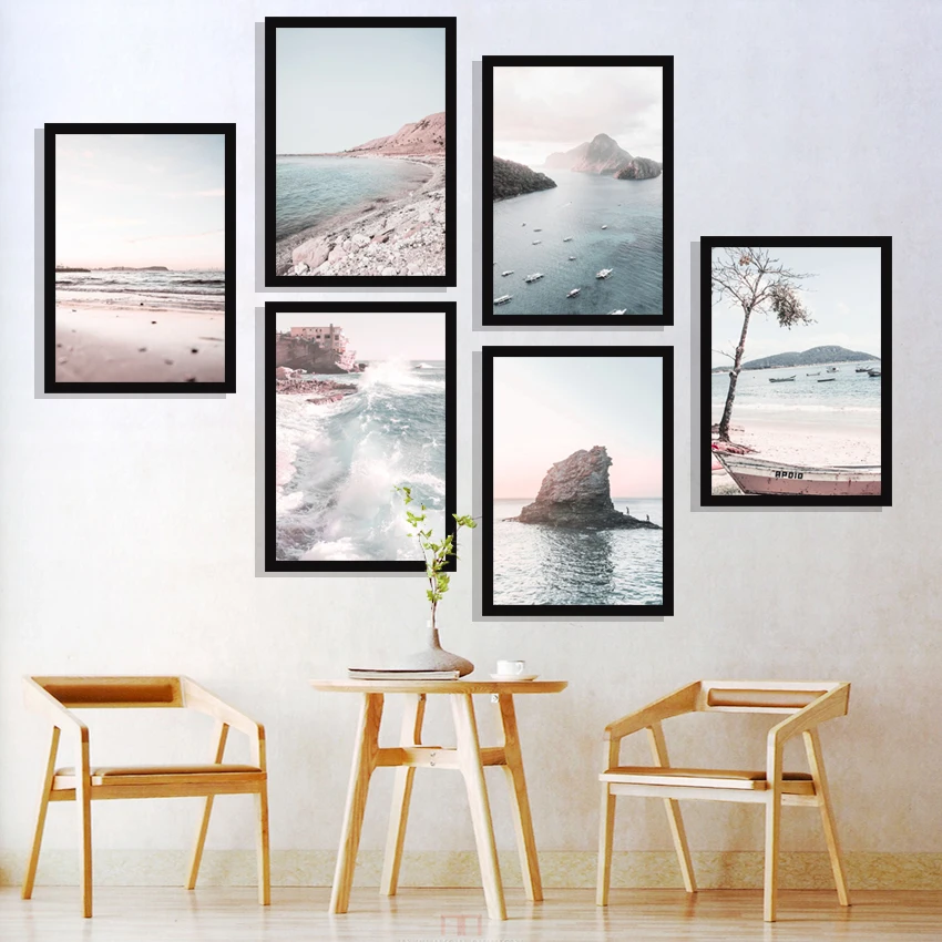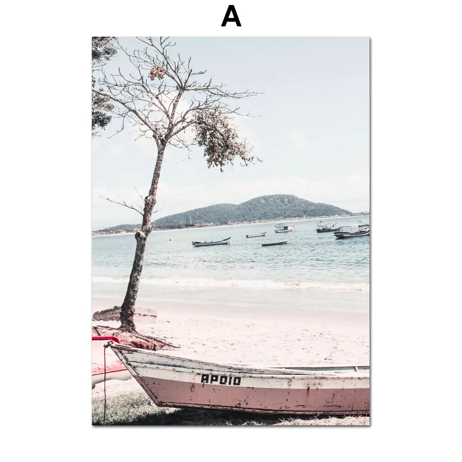 Пейзаж море пляж корабль дерево волна остров скандинавские плакаты и принты настенная живопись на холсте настенные картины для декора гостиной
