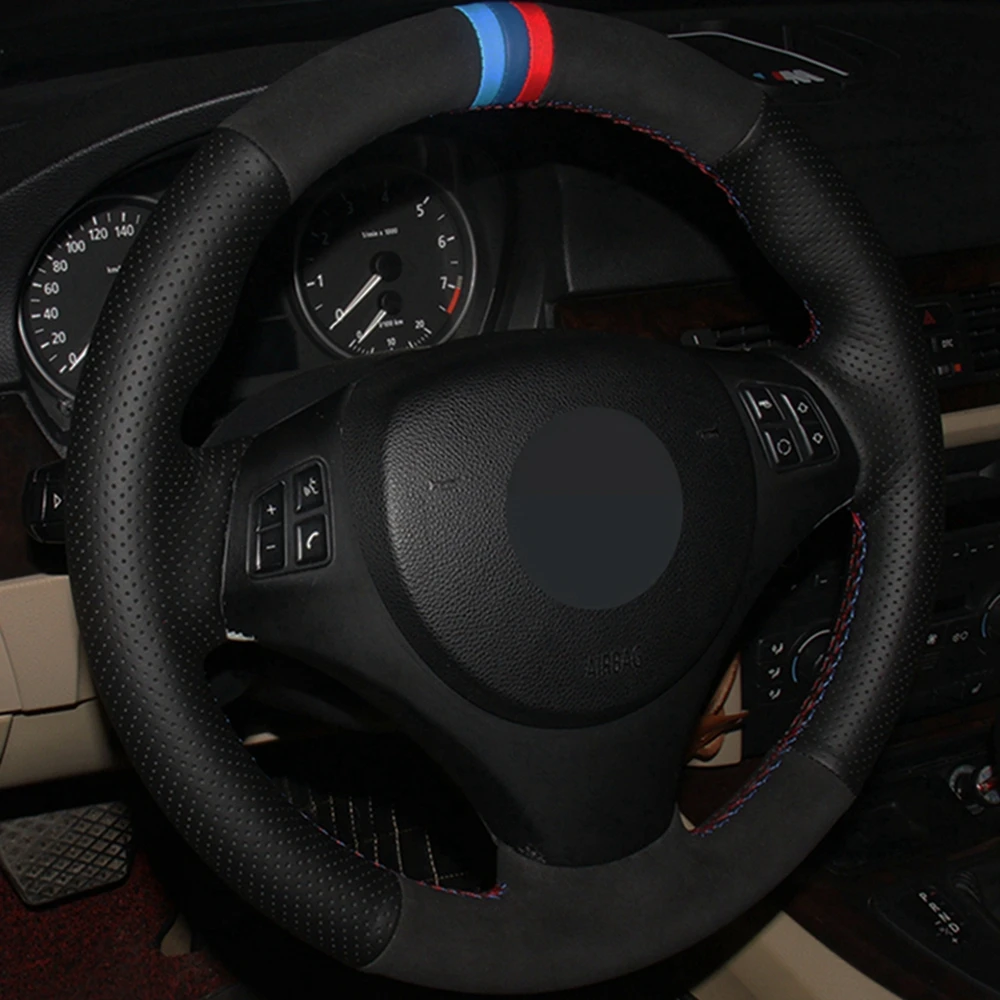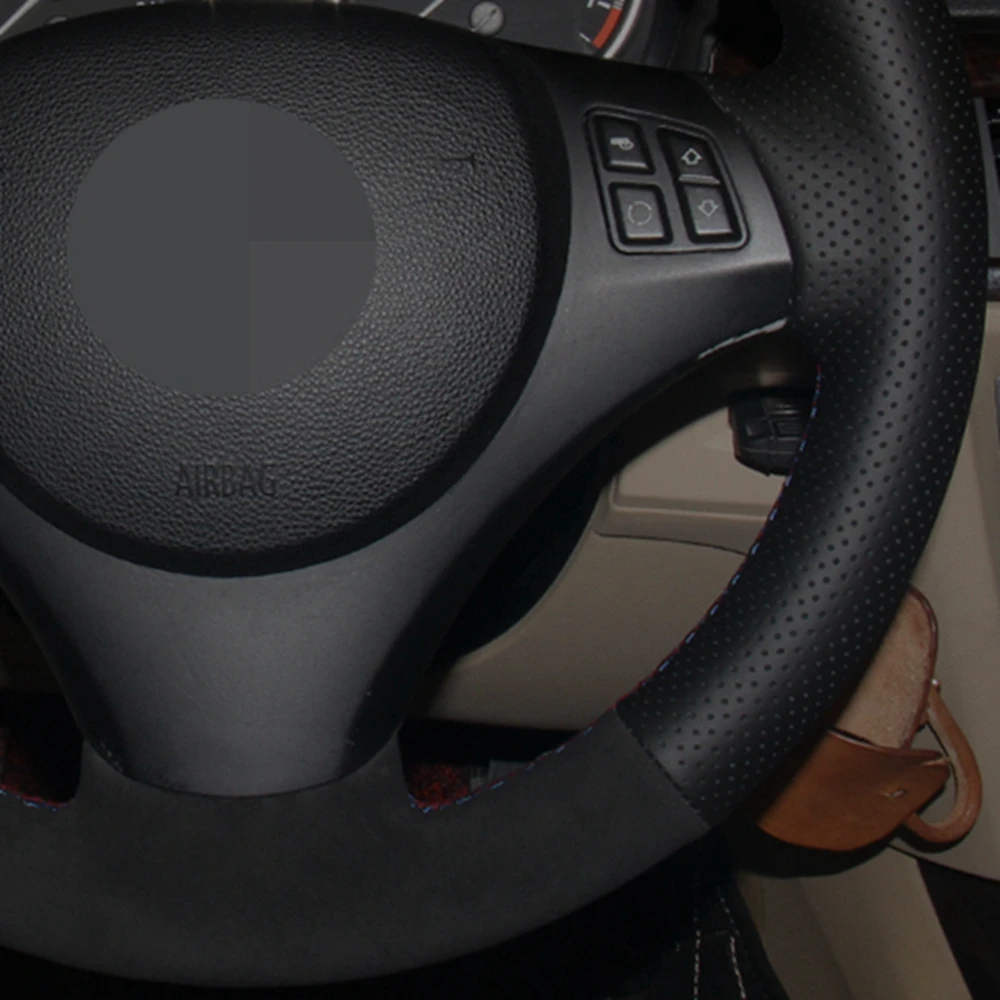 Чехол рулевого колеса автомобиля DIY ручной работы черного цвета из натуральной кожи и замши, для BMW E90 320i 325i 330i 335i E87 120i 130i 120d