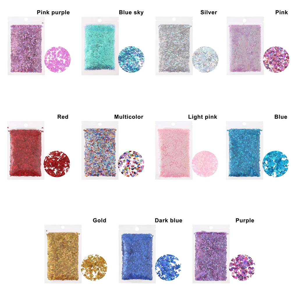 Голографическая форма бабочки для дизайна ногтей блестки микро лазерные Звездные хлопья 3D серебристые золотые блестки лак Маникюр украшения для ногтей советы