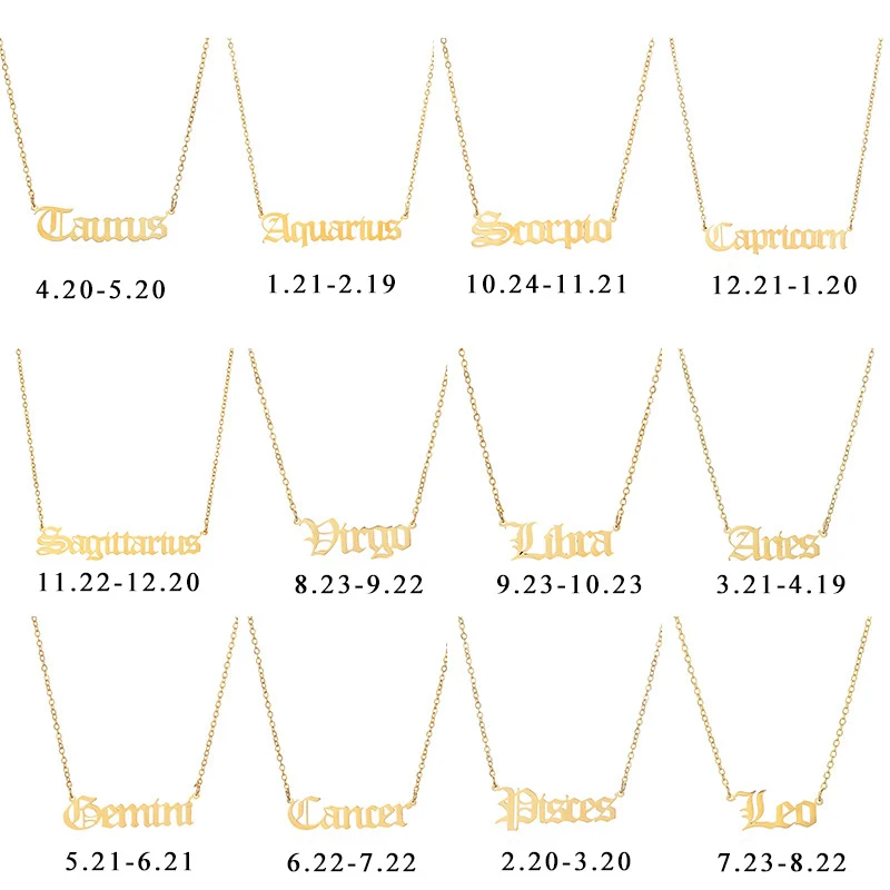 Ожерелье с надписью «Зодиак», «Скорпион», «Стрелец», Козерога, рыбы, Овен, Телец «близнецы», «Старый английский», 12 созвездий