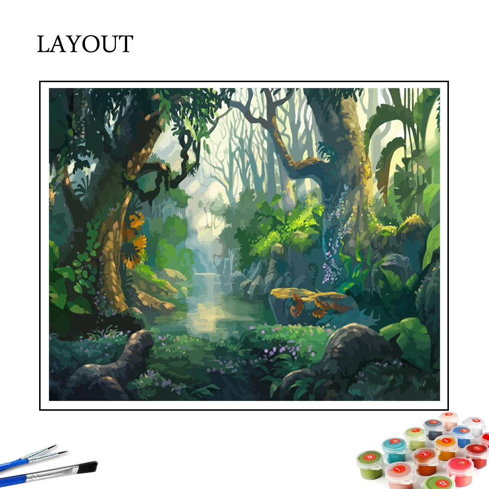 HUACAN DIY лес картинки по номерам Наборы живопись по номерам пейзаж рисунок на холсте Ручная роспись Картины домашний декор
