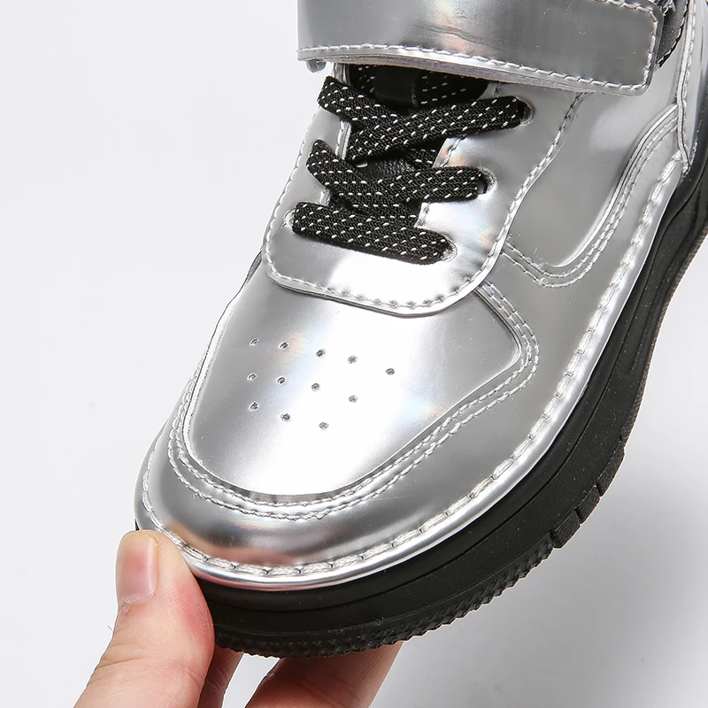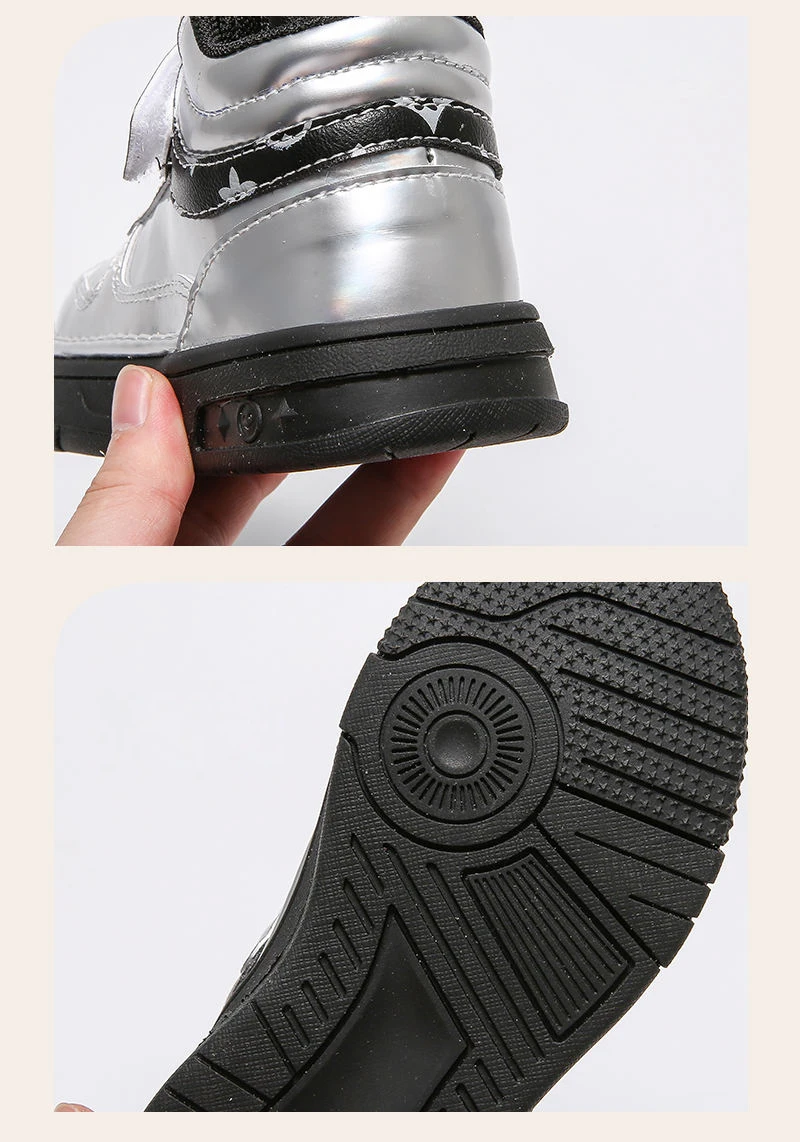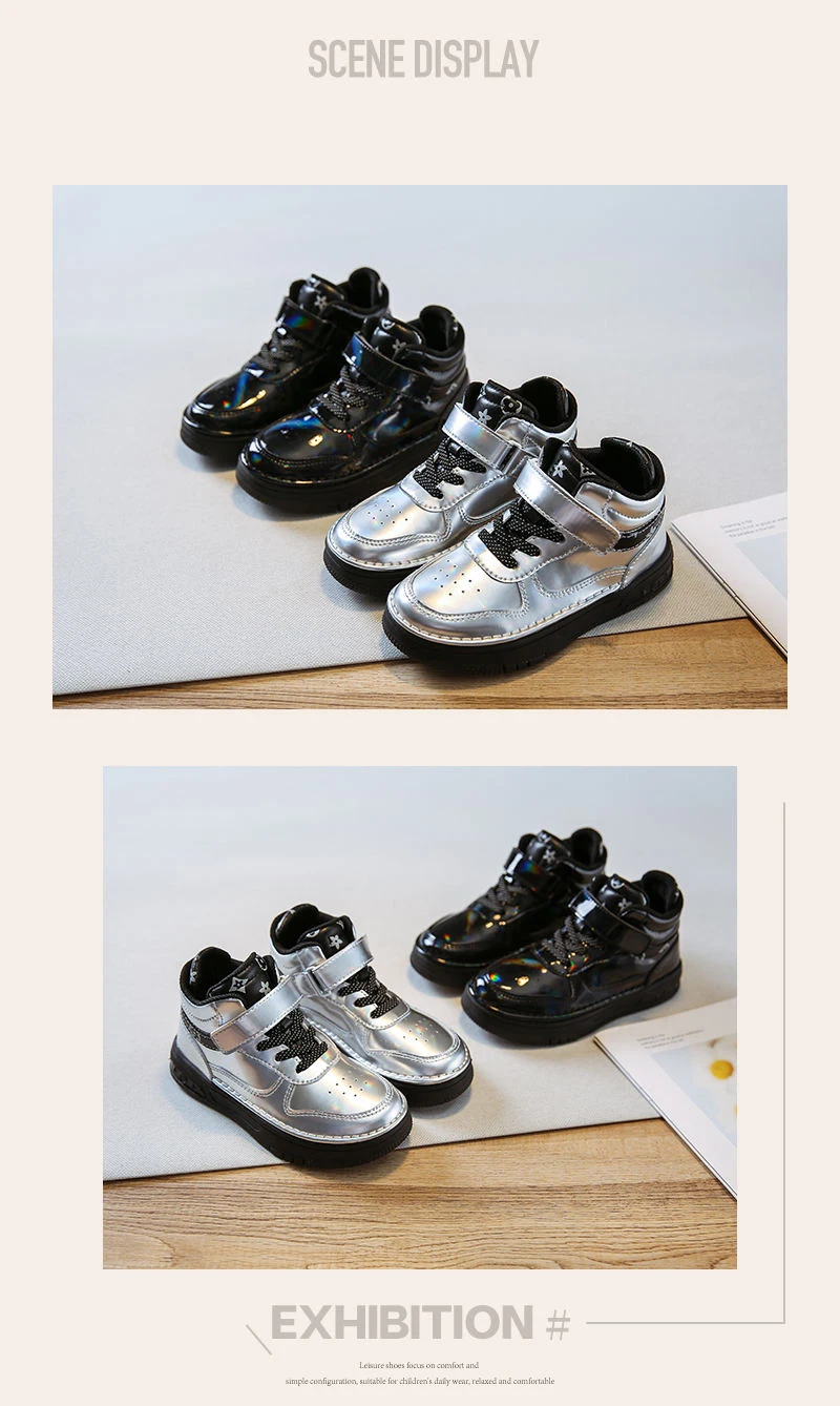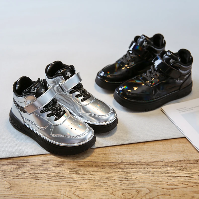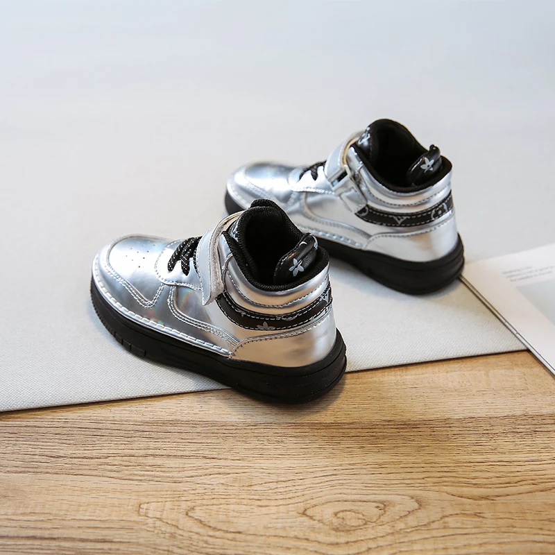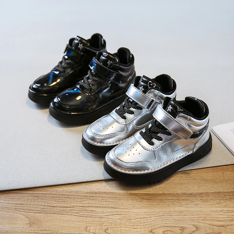 Осенние детские спортивные кроссовки с высоким берцем, брендовая Серебристая обувь для маленьких девочек, детские модные кроссовки, Повседневные кроссовки для девочек, новинка
