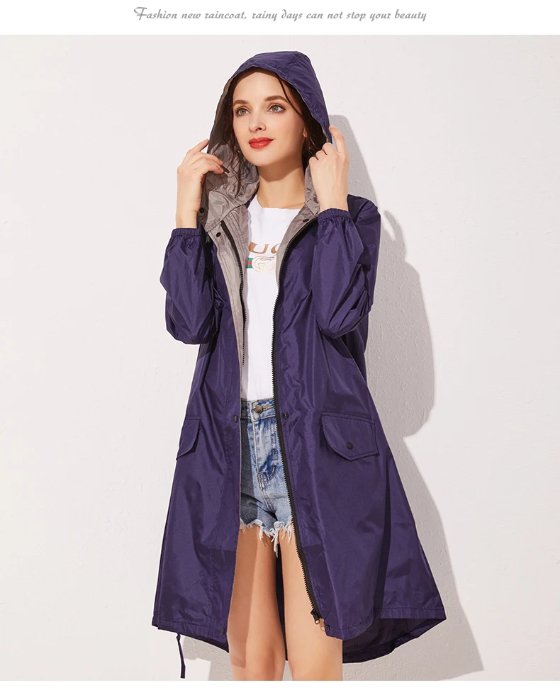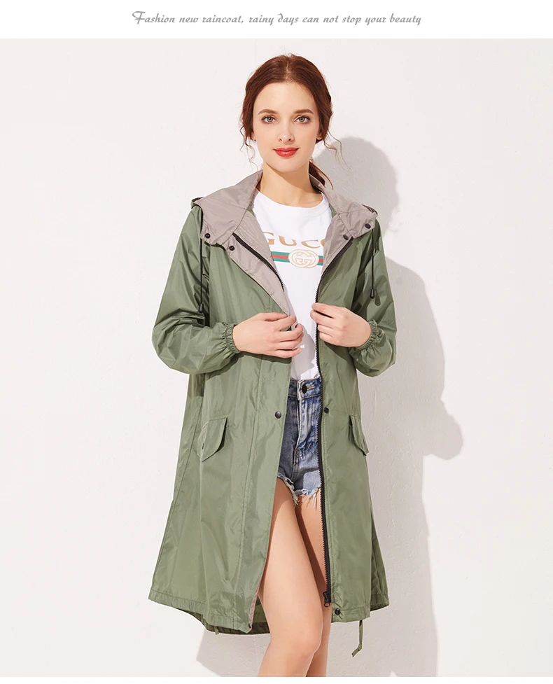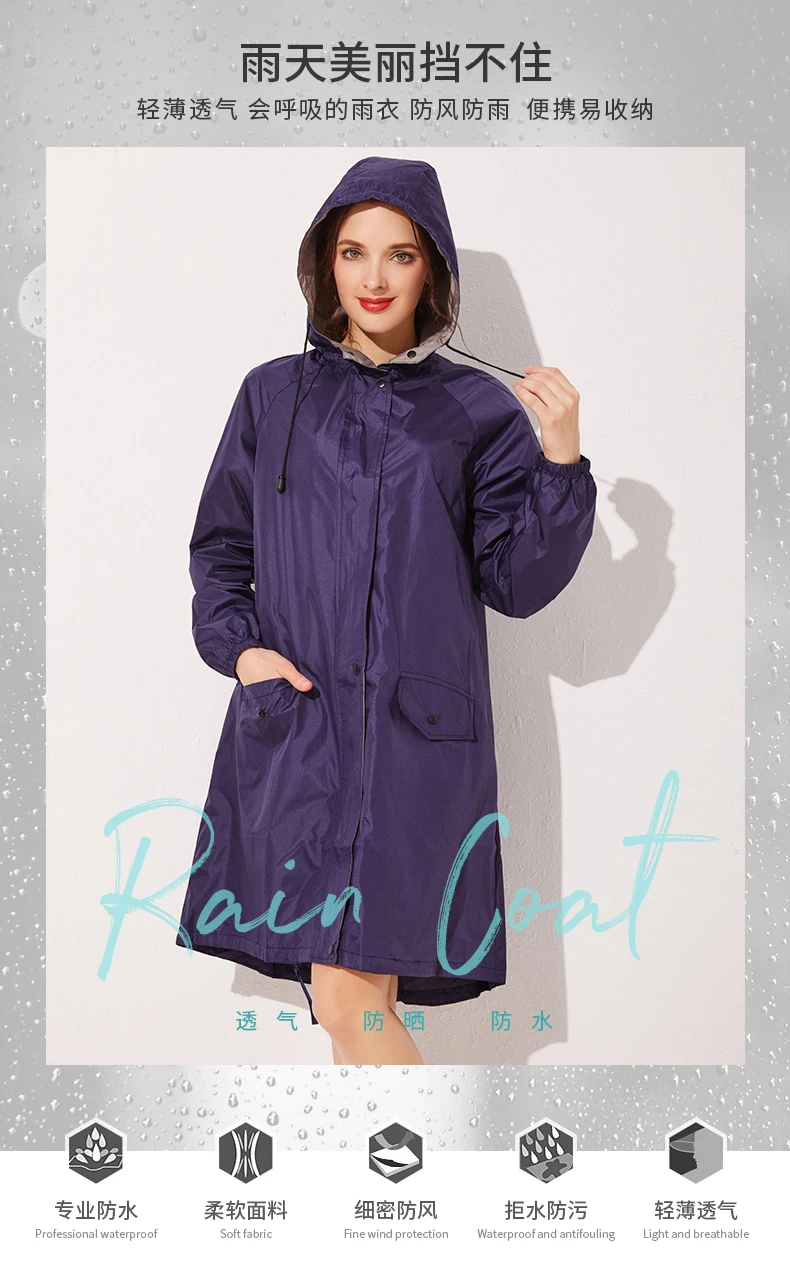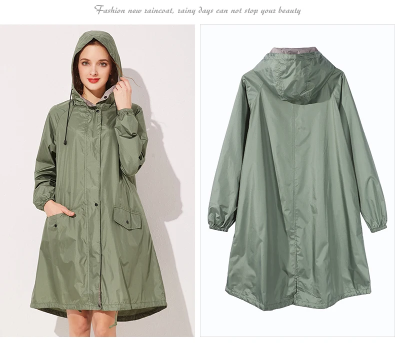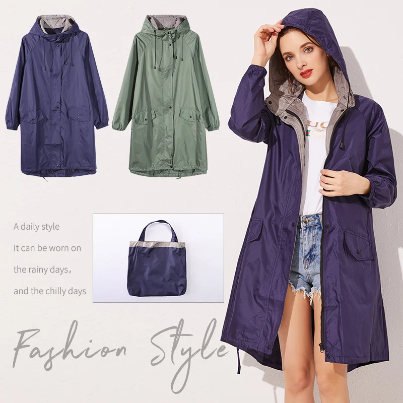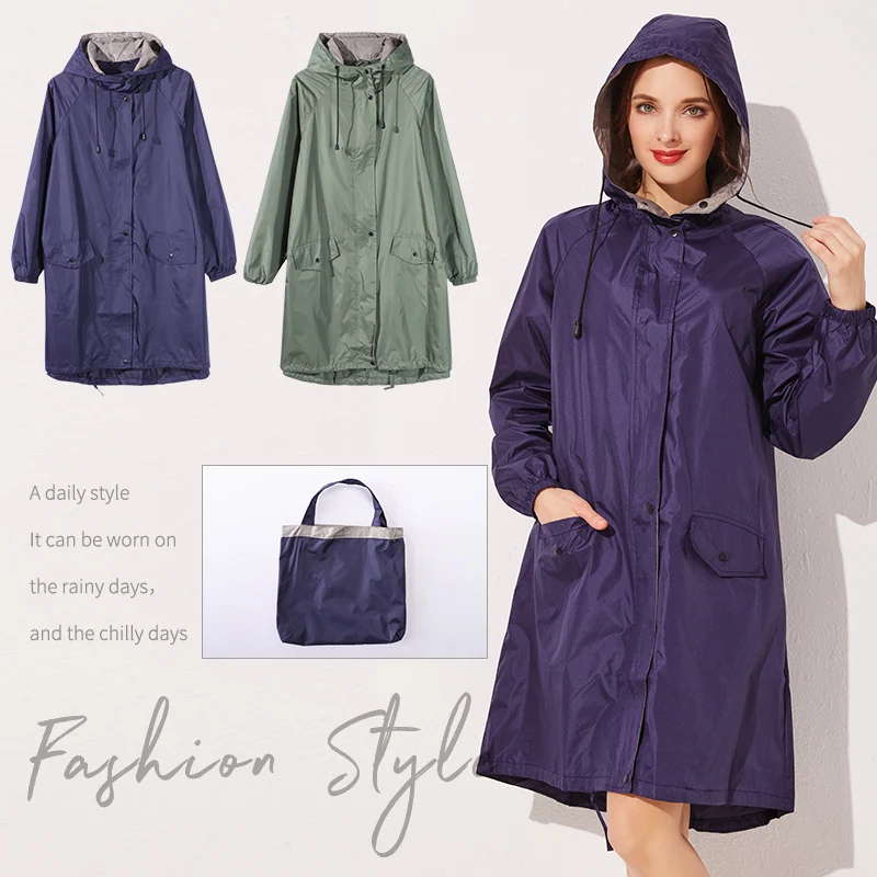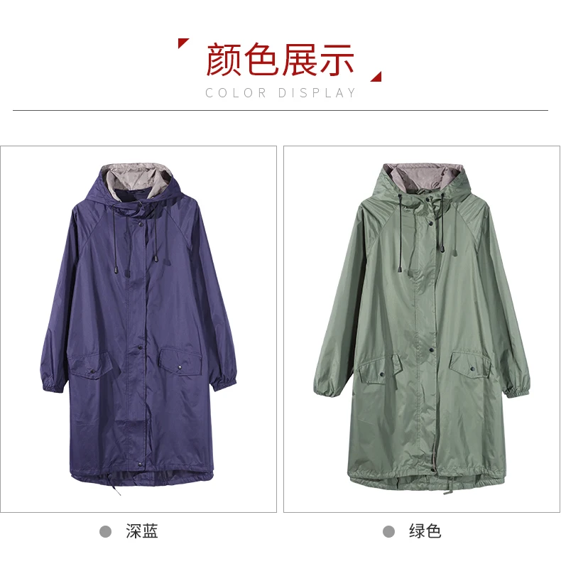 Плащ-дождевик Женский, длинный, водонепроницаемый, сине-зеленый