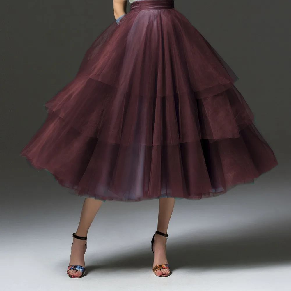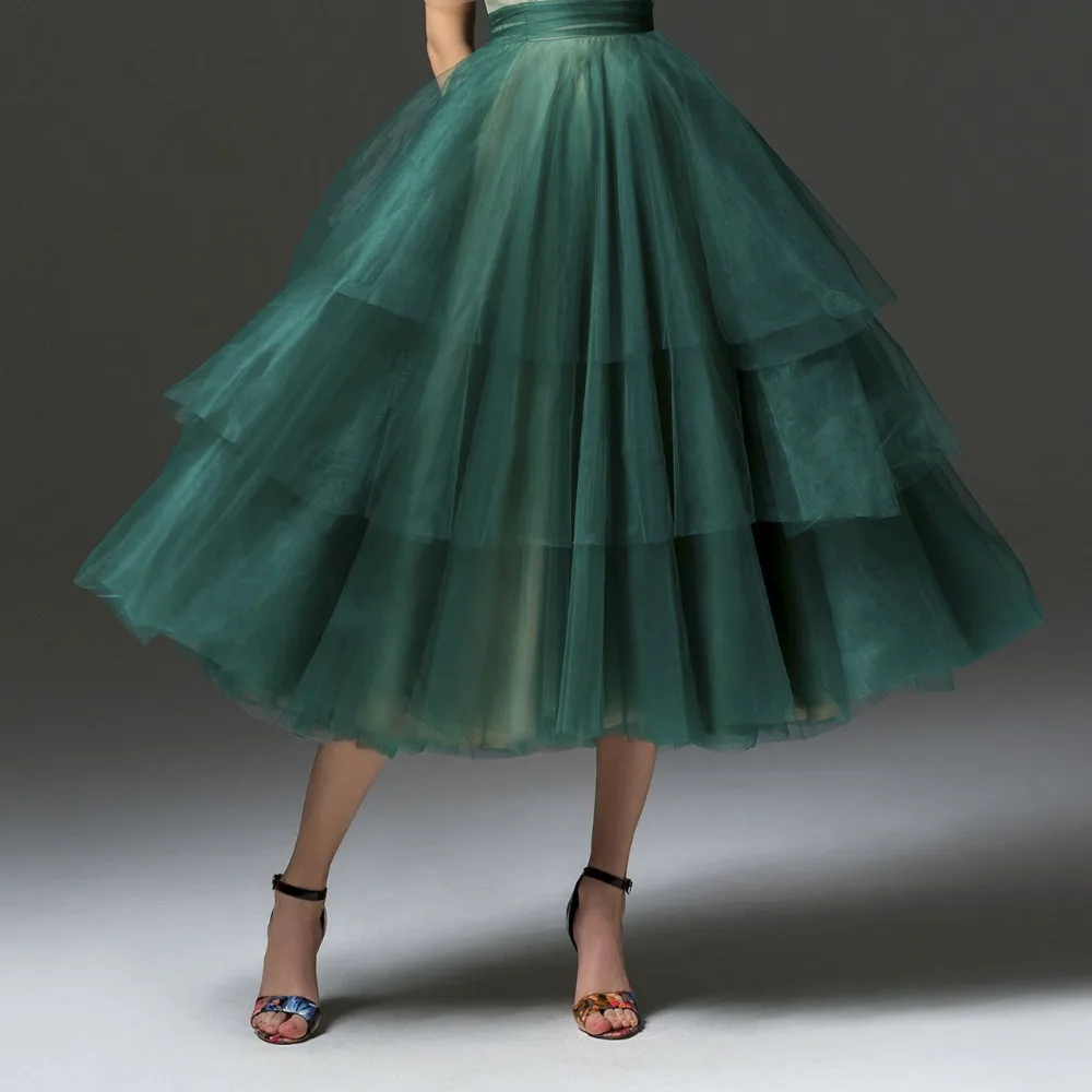 Юбка-пачка из фатина с зелеными оборками, многослойная Женская мода юбка-пачка до середины икры 2020