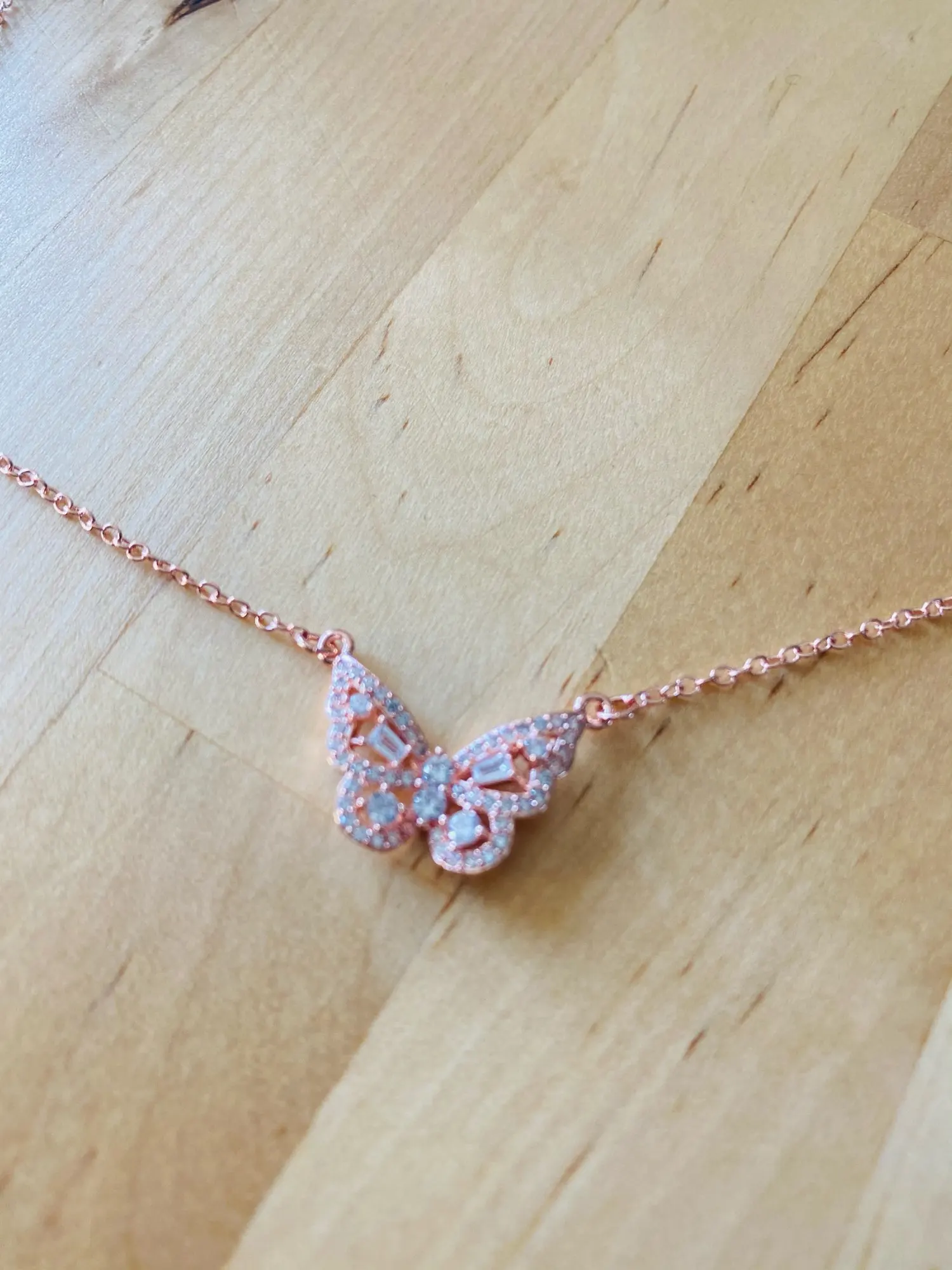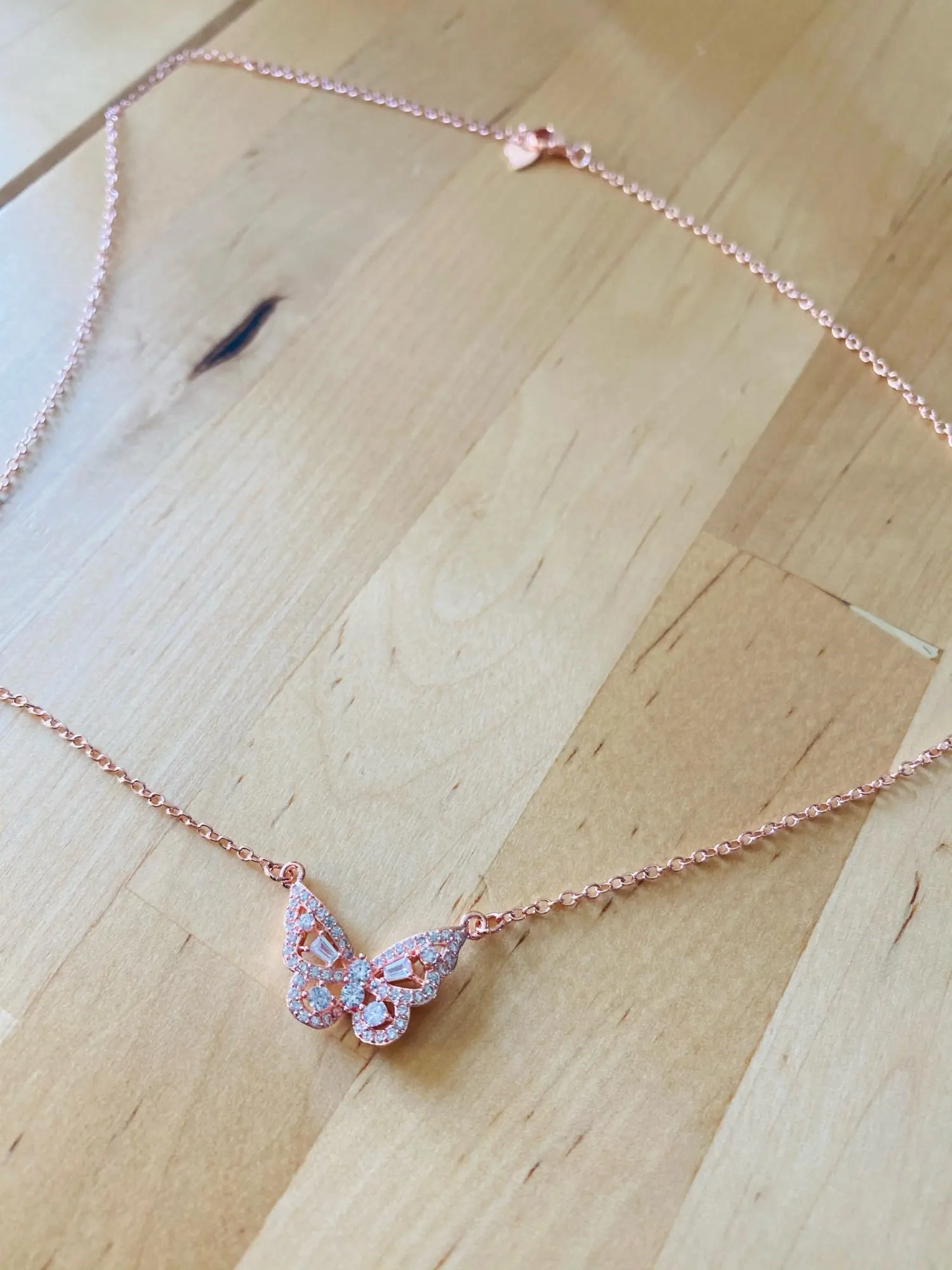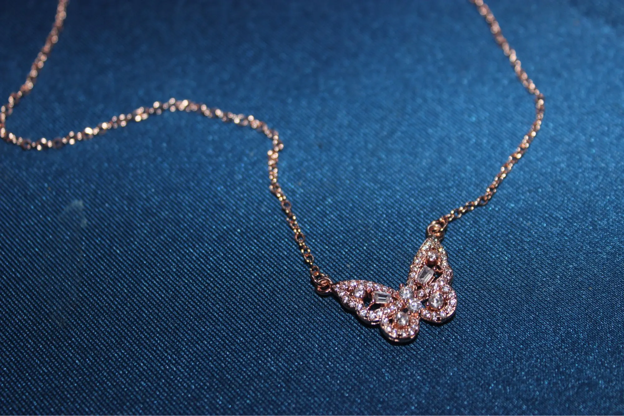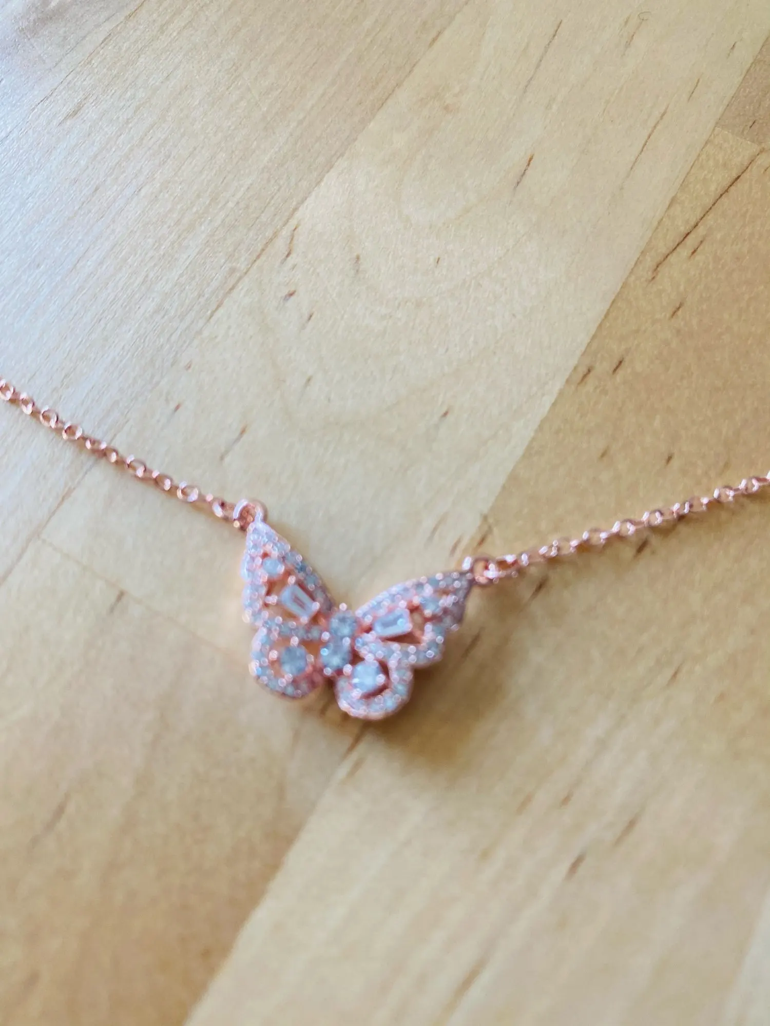 Лидер продаж, Новое поступление, ожерелье с бабочкой из циркония, Очаровательное украшение из розового золота с фианитами, украшения для женщин и девушек