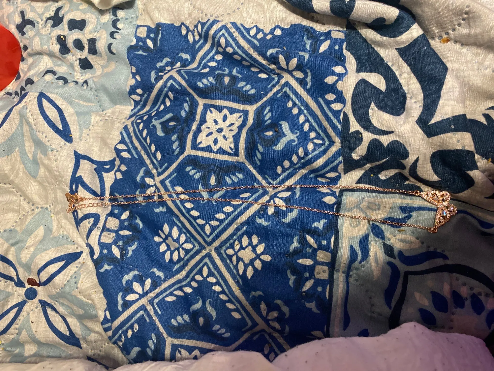 It took a while to arrive but it was worth it every bit, the necklace is just like the picture and description and is very good quality especially for this price paid. The diamonds glisten in the light and it looks expensive. The buyer was in good contact with me for any enquiries I had on the item and made sure I was delivered the item on time and at the right address.