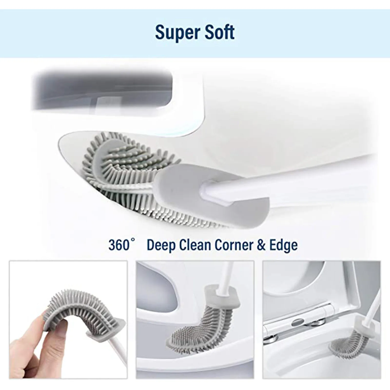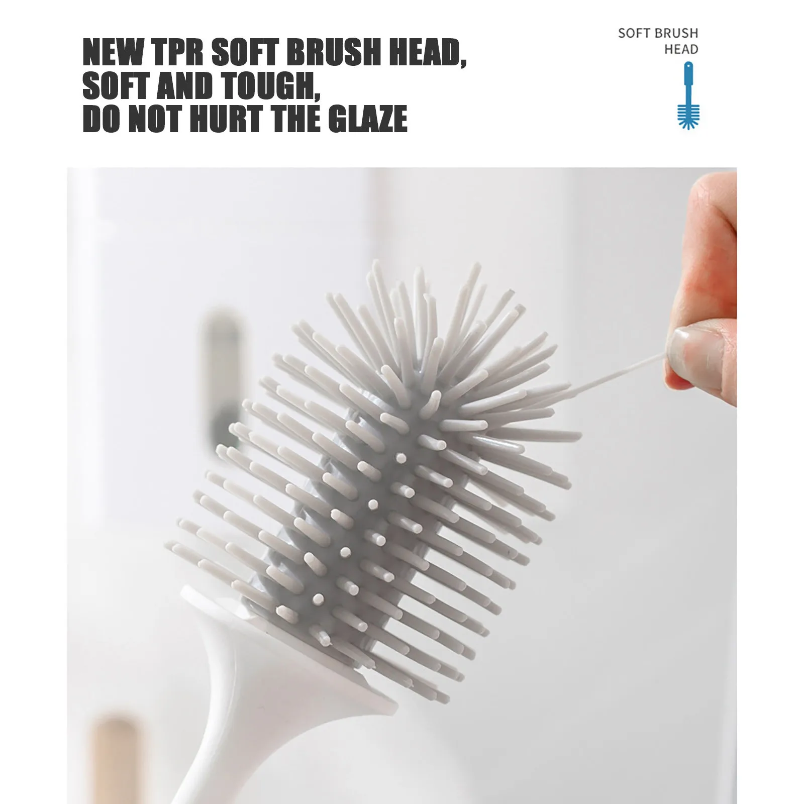 Держатель для туалетной щетки с мягкой щетиной, крепкий и легко чистящийся силиконовый 10x40 см, 1 шт., туалетная щетка белого цвета, без мертвой щетки для унитаза