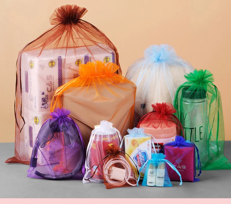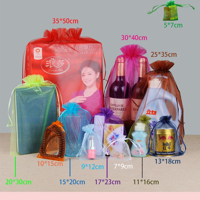 Подарочный мешок из органзы, 10 шт.лот, 12 размеров, сумка для упаковки ювелирных изделий, украшения для свадебвечерние, сувениры со шнурком, детский праздник