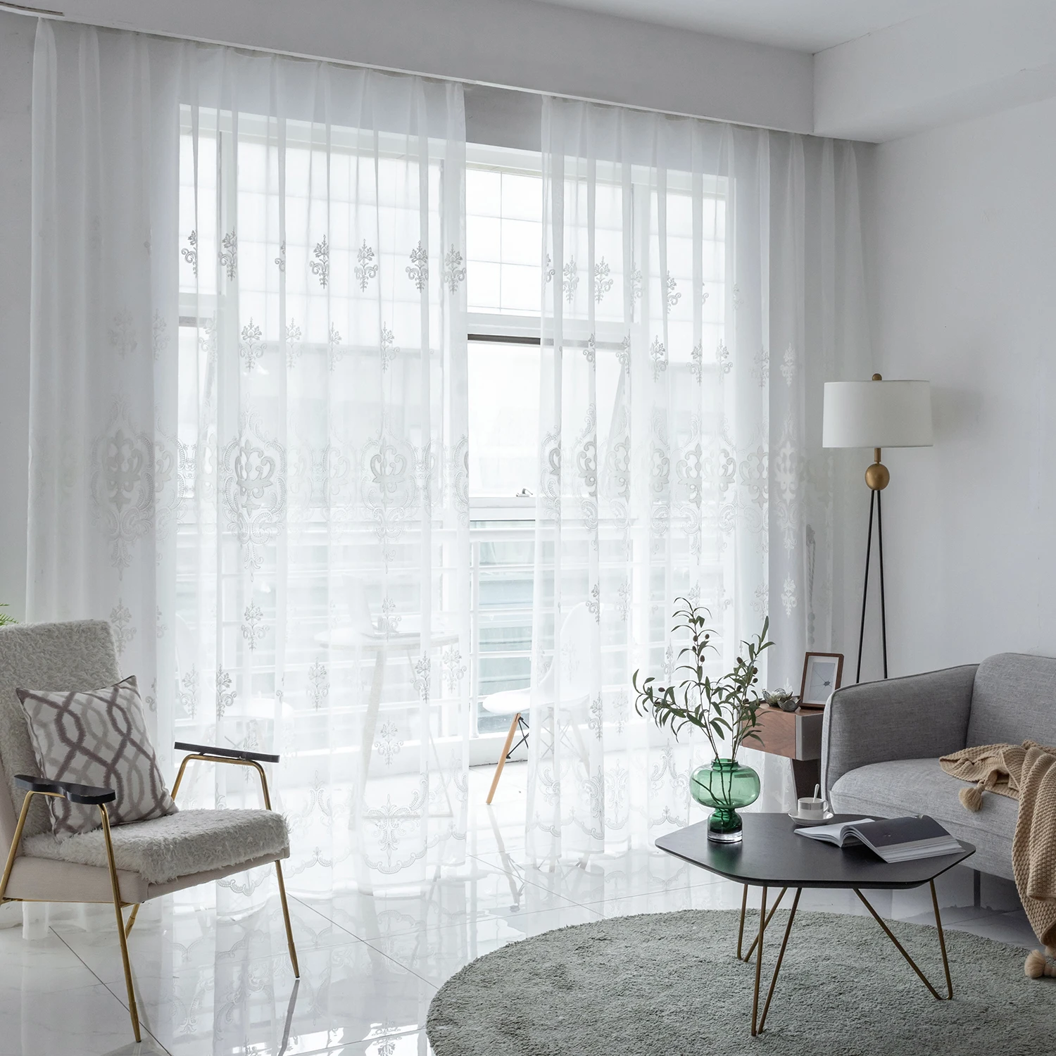 Роскошные прозрачные шторы из пряжи с вышивкой для гостиной, тюлевые шторы для спальни, украшение для окна в европейском стиле, свадьба