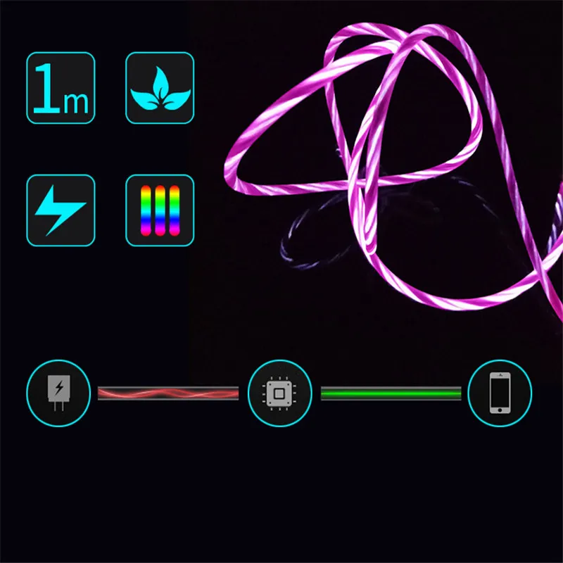 Яркий светящийся кабель мобильный телефон кабель для зарядки LED Mi...