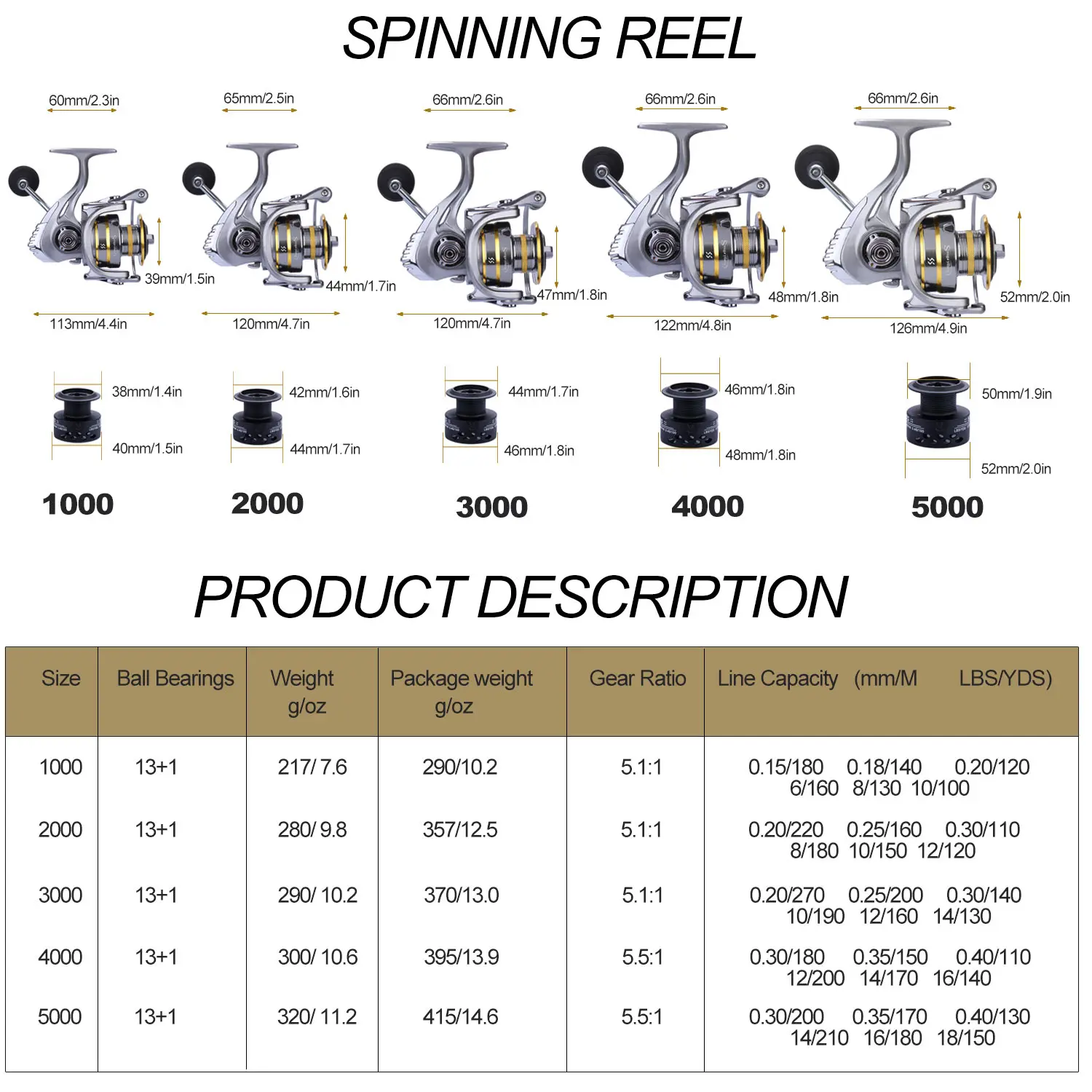 Sougayilang металлическая катушка для спиннинга 13 + 1BB двойная катушка 5,5: 1 Ультра гладкая катушка для ловли карпа с балансировочным стержнем