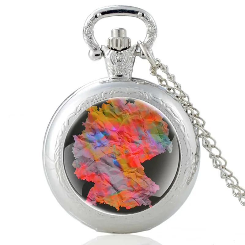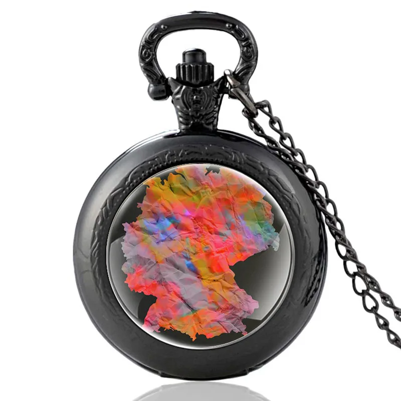 Классические винтажные кварцевые карманные часы с карманом и картой из Германии для мужчин и женщин, уникальный стеклянный кабошон, подвеска, ожерелье, часы-брелок, подарки