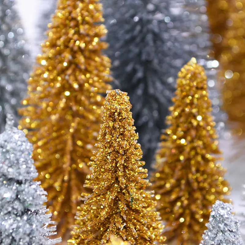 8 шт., Мини Рождественская елка, золото, серебро, сделай сам, искус...
