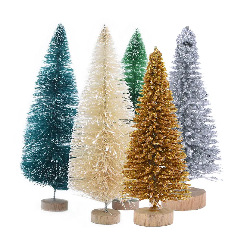 5 шт. (5 см)-12,5 см Маленькая Рождественская елка цвет золотой, зеленый; Маленький сосна сизальских канатов помещен на рабочем столе Новогодние украшения для рождественской вечеринки с утолщённой меховой опушкой
