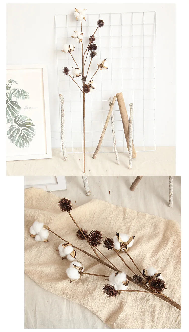 Сушеные хлопковые цветы, искусственные растения, Цветочная ветка дл...