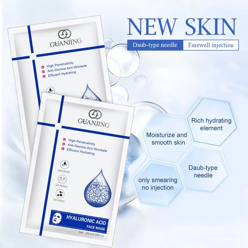 Наименование товара: маска для лица с гиалуроновой кислотой Применимая кожа: подходит для разных типов Особенности: обладает микромолекулами с хорошей текучестью и высокой проницаемостью, эффективно увлажняет, восстанавливает коллаген в коже, поддерживает баланс влаго-масляного масла и коренным образом решает различные проблемы, включая старение кожи.