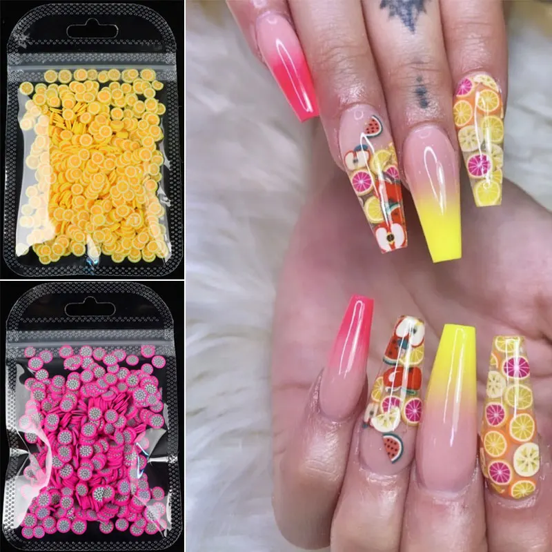 15 видов стилей 3D фрукты крошечные ломтики наклейки Полимерная глина DIY дизайн ломтики дизайн ногтей декоры фрукты ломтики блестки красочные Типсы для дизайна ногтей