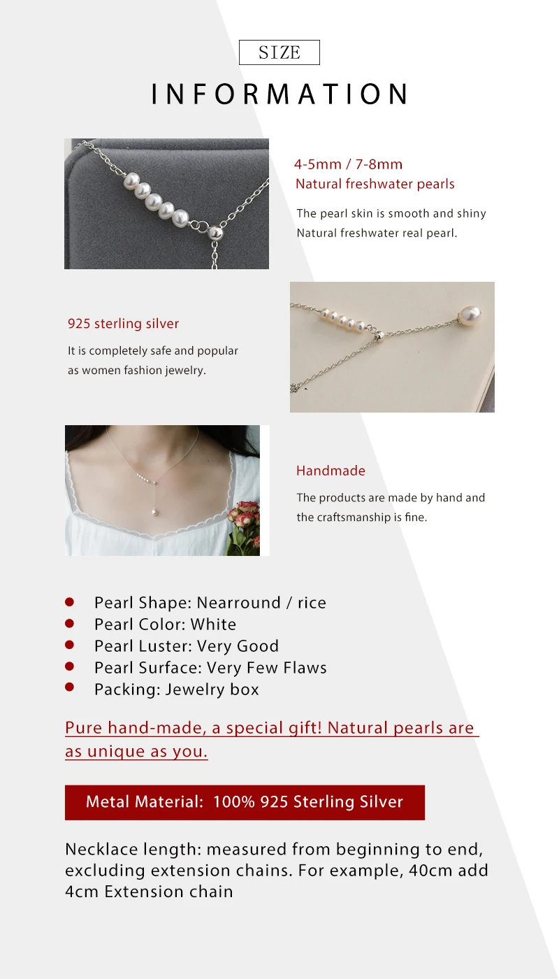 Ожерелье женское из серебра 925 пробы с натуральным пресноводным жемчугом